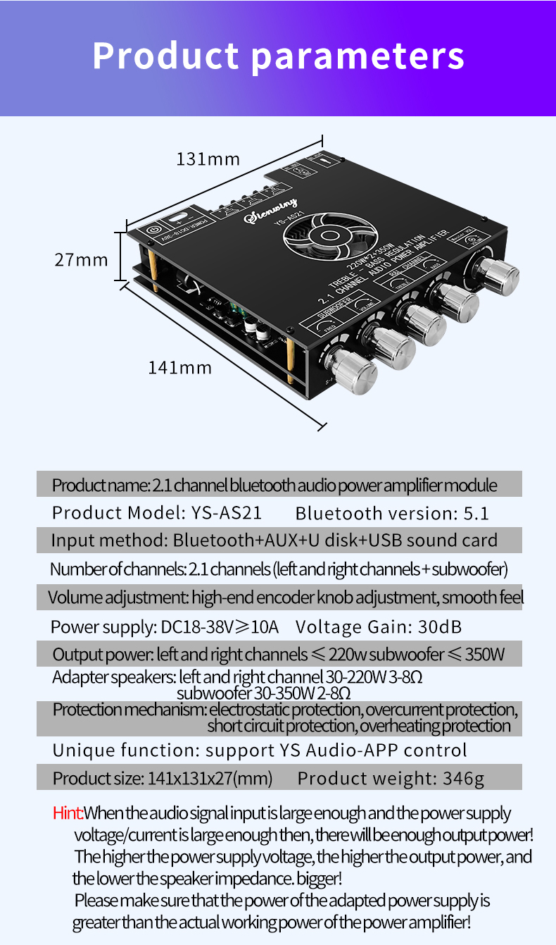 1. Продукт разработан с двумя ЧИПАМИ усилителя мощности Texas Instruments tpa3255, с ультра-низким искажением
