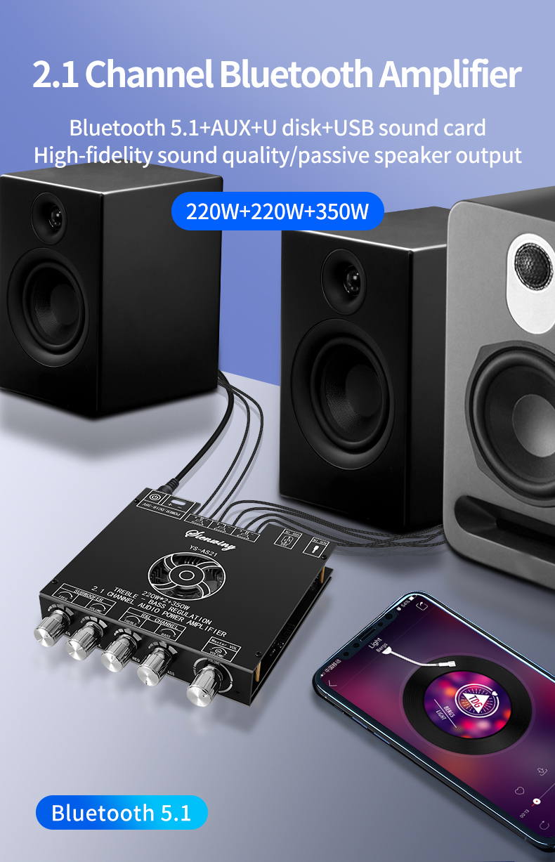 Цифровой усилитель мощности YS-AS21 2*220 Вт + 350 Вт 2,1 канальная BT плата цифрового усилителя мощности TPA3255 AMP сабвуфер высокие басы тональное аудио APP