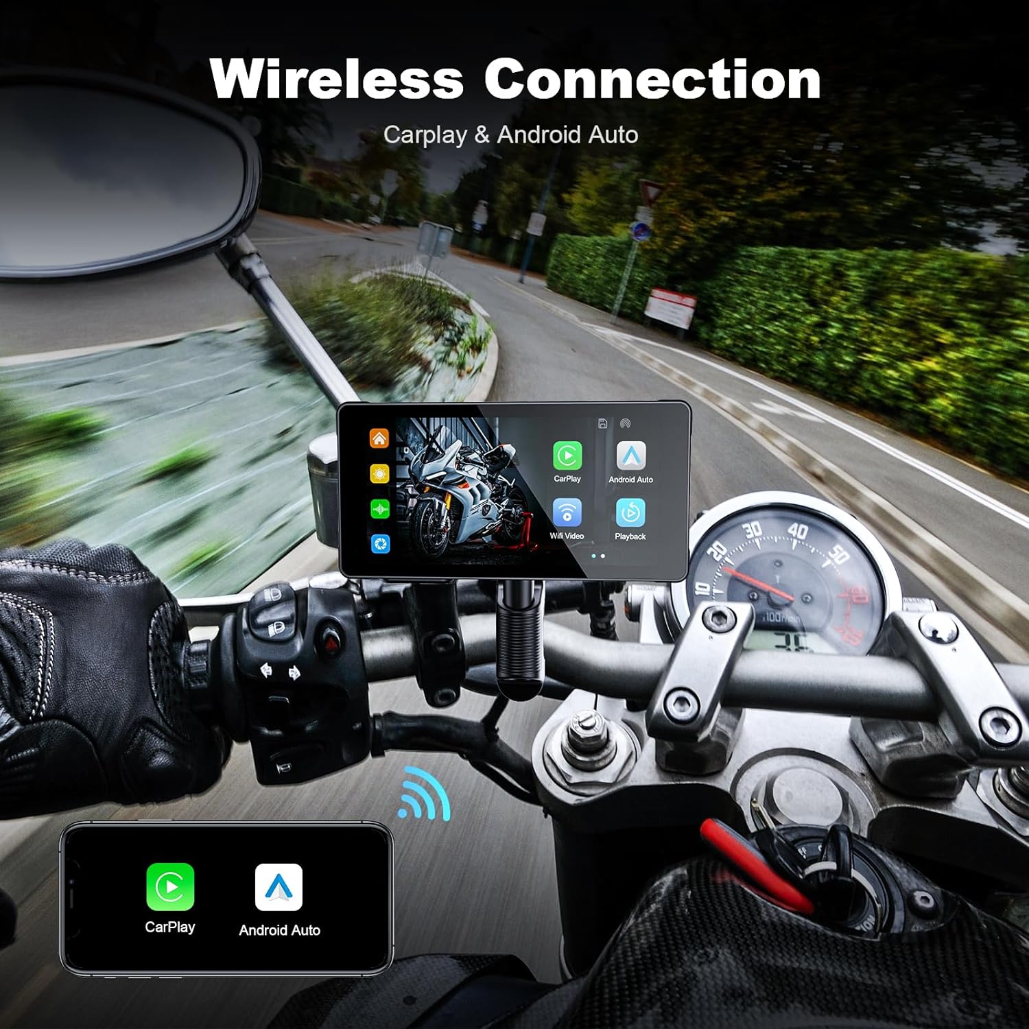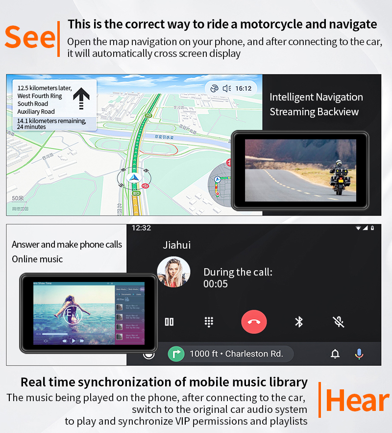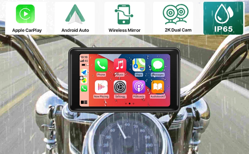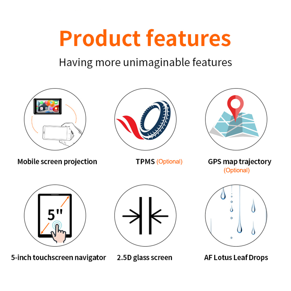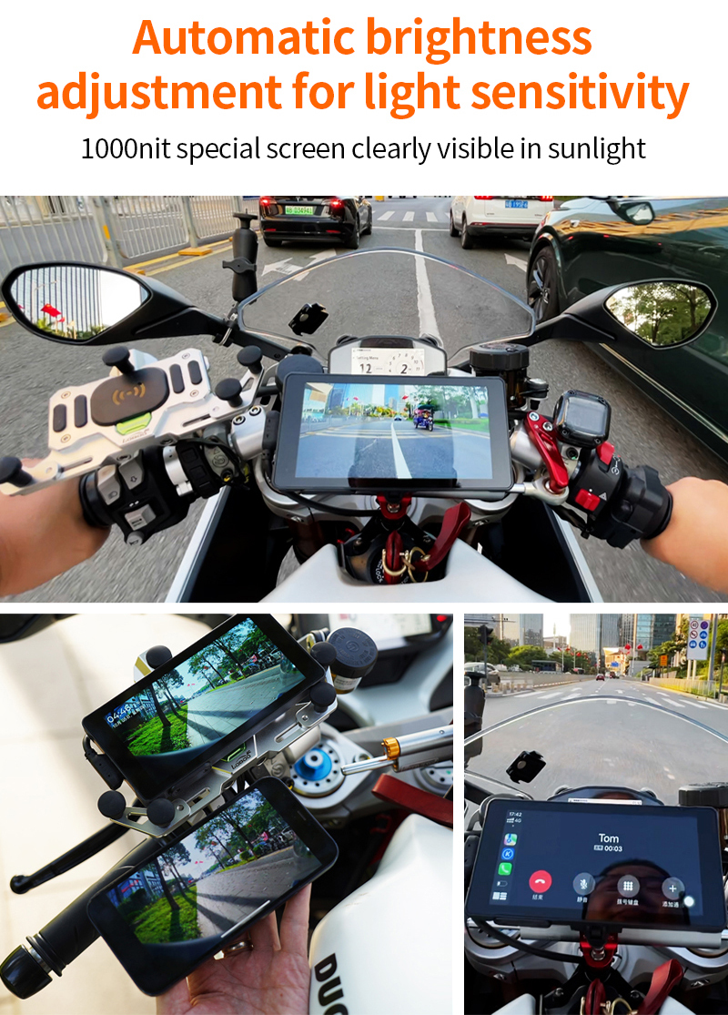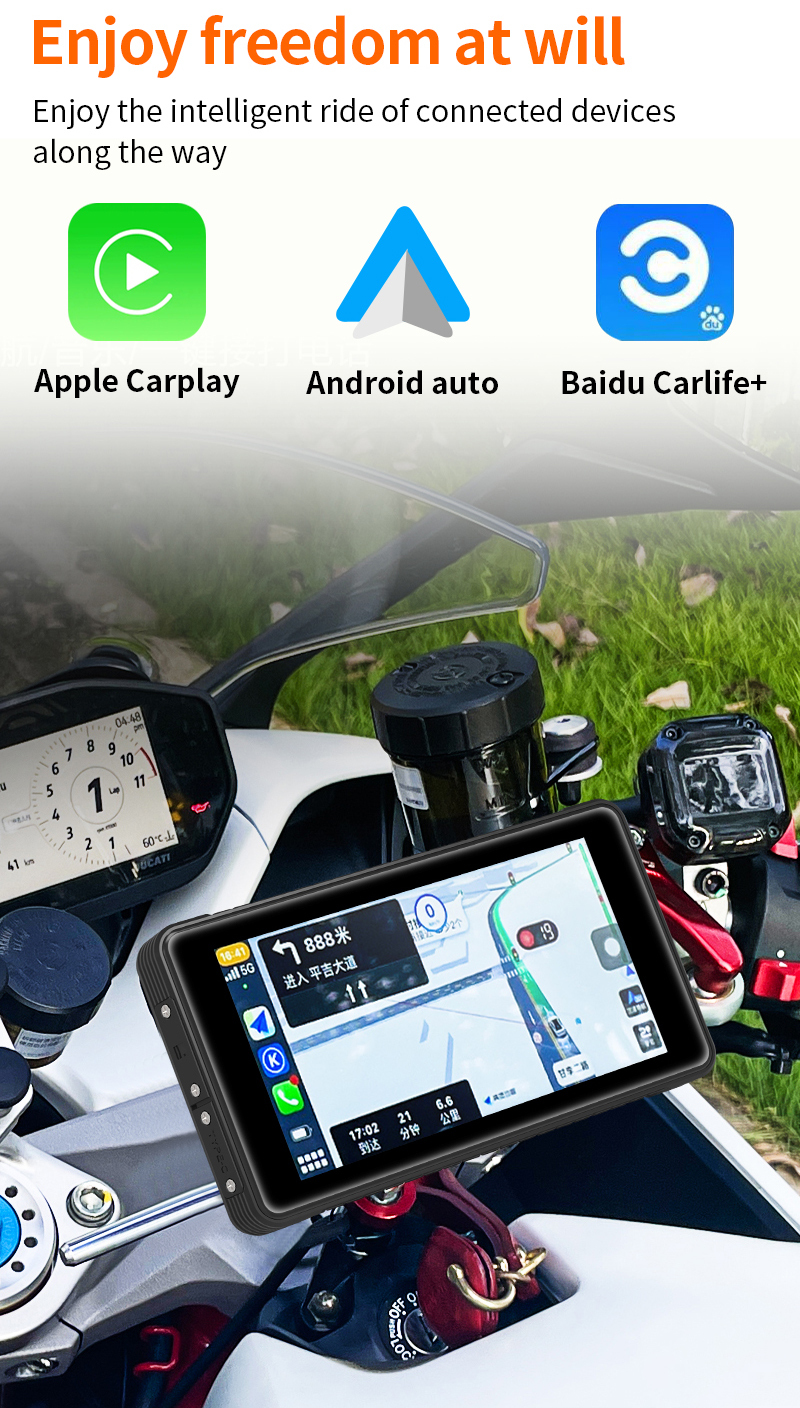 6, элегантно спроектированное решение для мотоцикла Carplay: оснащено водонепроницаемым 5-дюймовым сенсорным экраном Full IPS, удобными 4-сторонними кнопками для интуитивно понятного управления, и регулируемый держатель кронштейна для универсальной совместимости с мотоциклами.