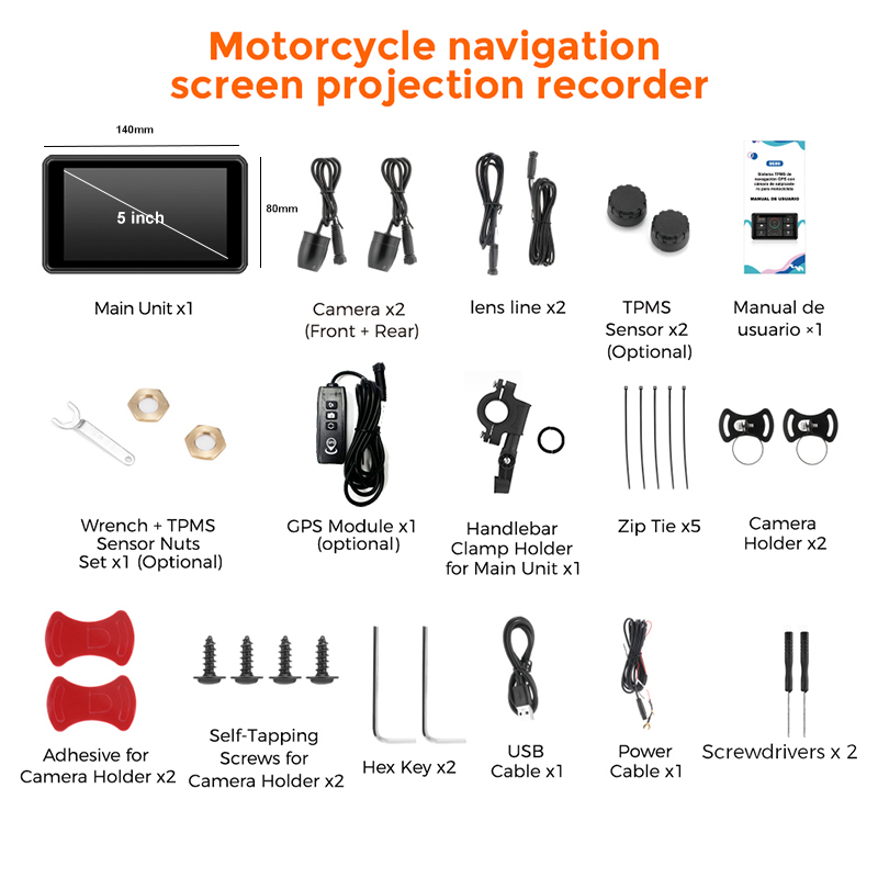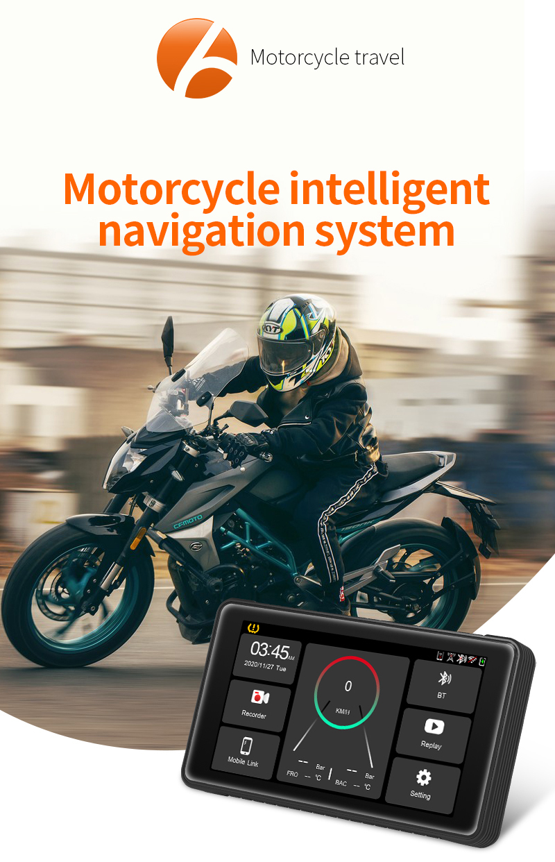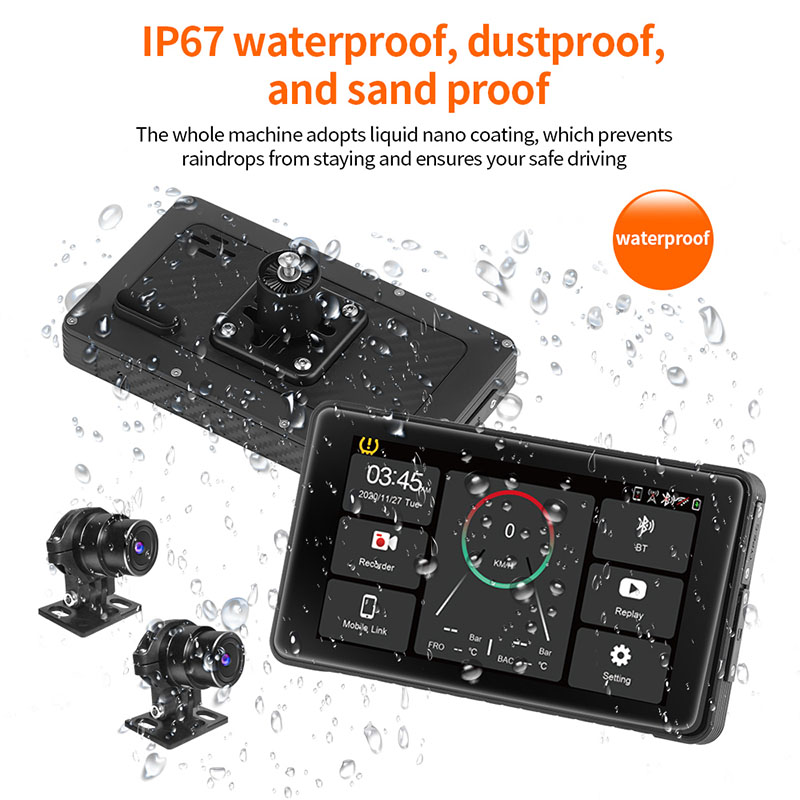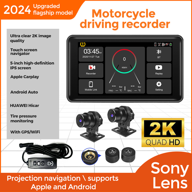 Мотоцикл DVR Беспроводной Carplay Android Авто TPMS Двойная HD 2K камеры GPS 5-дюймовый WiFi Bluetooth Обнаружение Циклическая запись G-датчик