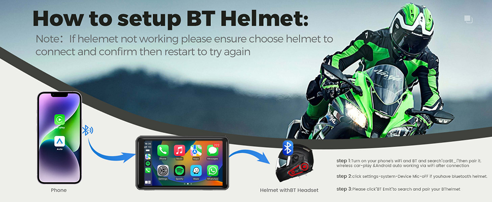 5, включите беспроводную связь CarPlay и Android Auto через Wi-Fi. 2. Убедитесь, что микрофон устройства выключен. Перейдите в Настройки >>> Система >>> Микрофон устройства >>> ВЫКЛ 3. Получите доступ к «Bluetooth-излучению» для поиска и подключения к шлему Bluetooth.