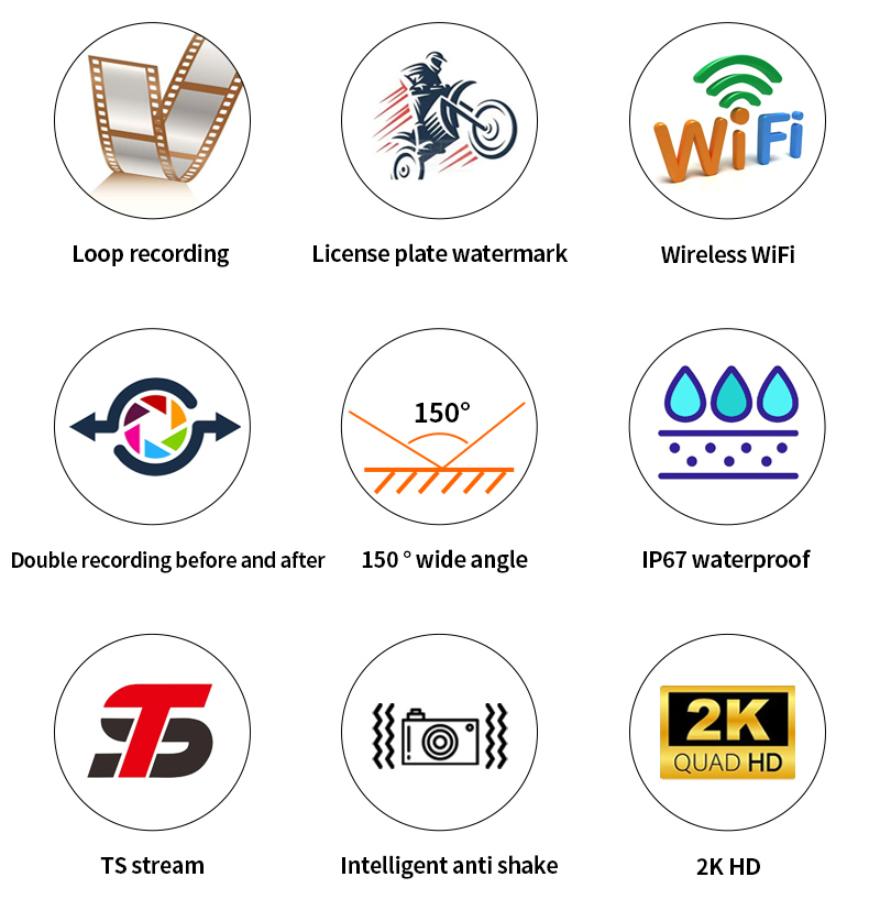 2, кристально чистые двойные передние и задние камеры 1080P: Изготовлен с точностью, отличается высококачественными чипами, водонепроницаемостью IP65, прочным металлическим корпусом и широким углом обзора 150 градусов