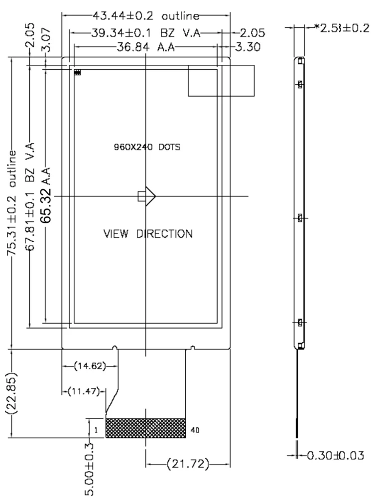 Область отображения (A.A): 36,84 (Ш) * 65,52 (В) мм