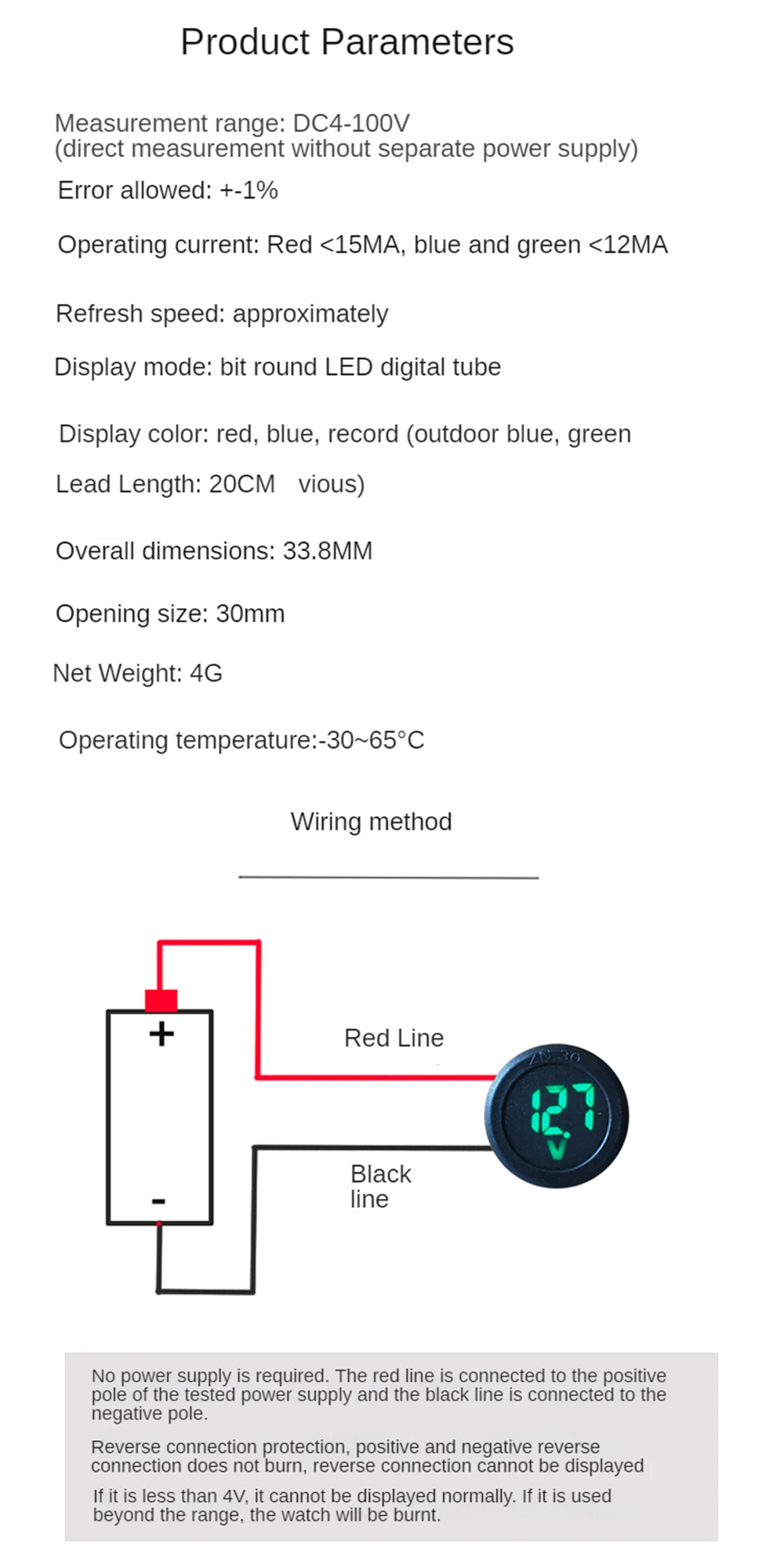Цифровой вольтметр, постоянный ток 4-100 в, цифровой дисплей, круговой двухпроводной вольтметр, цифровой вольтметр постоянного тока, детектор напряжения, тестер, монитор