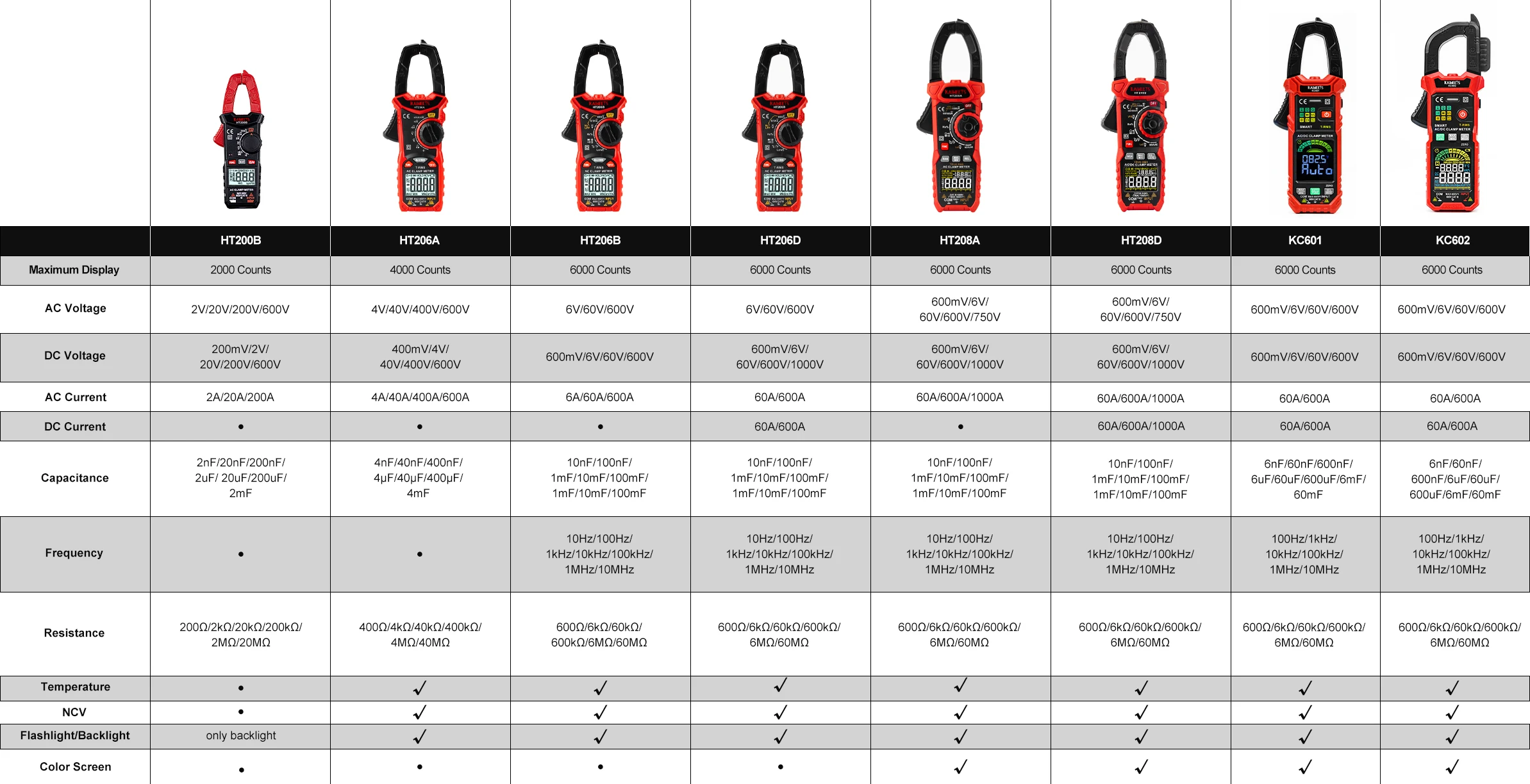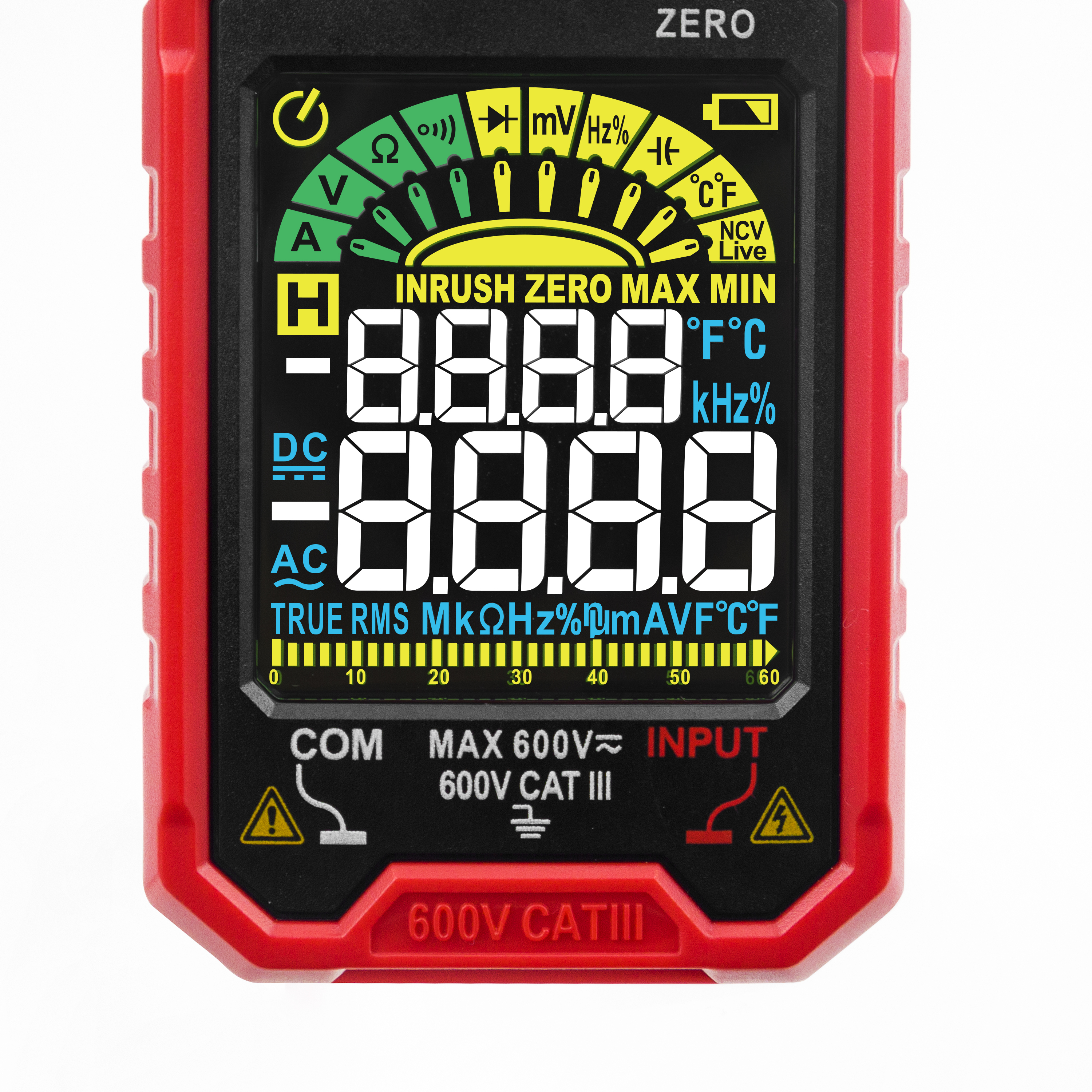 Он может измерять AC/DC ток, переменное/Постоянное напряжение, сопротивление, целостность цепи, емкость, диод, частота, режим работы, температура, провод под напряжением, NCV, пусковой ток, есть Удержание данных, макс./мин, цветной экран HD, освещение фонарика, индикация низкого заряда батареи, автоматическое отключение.