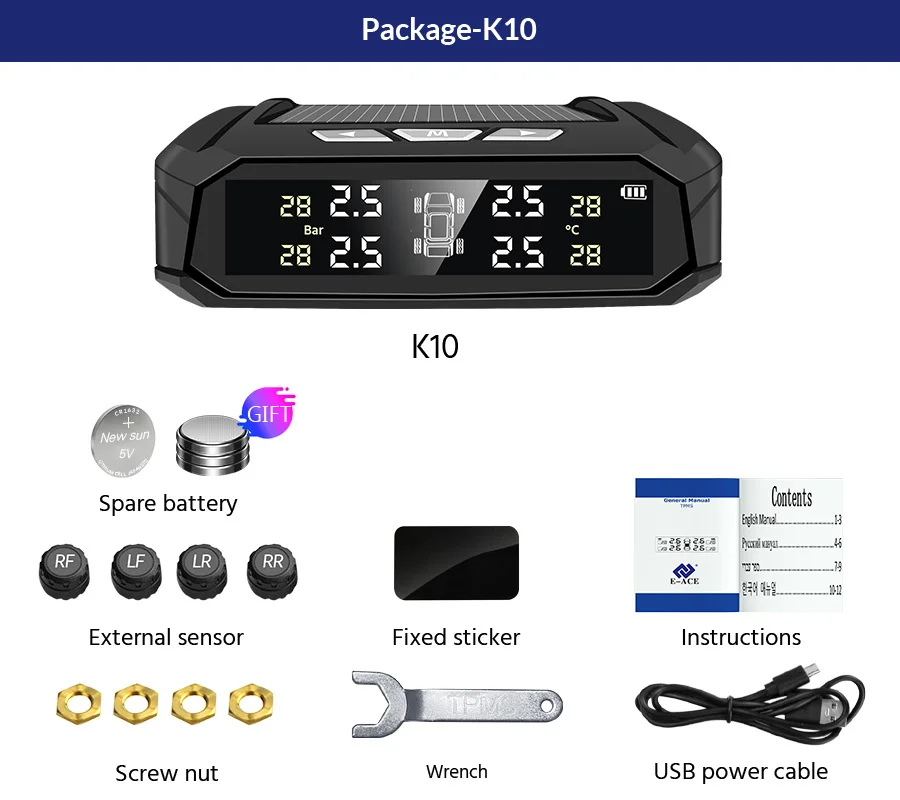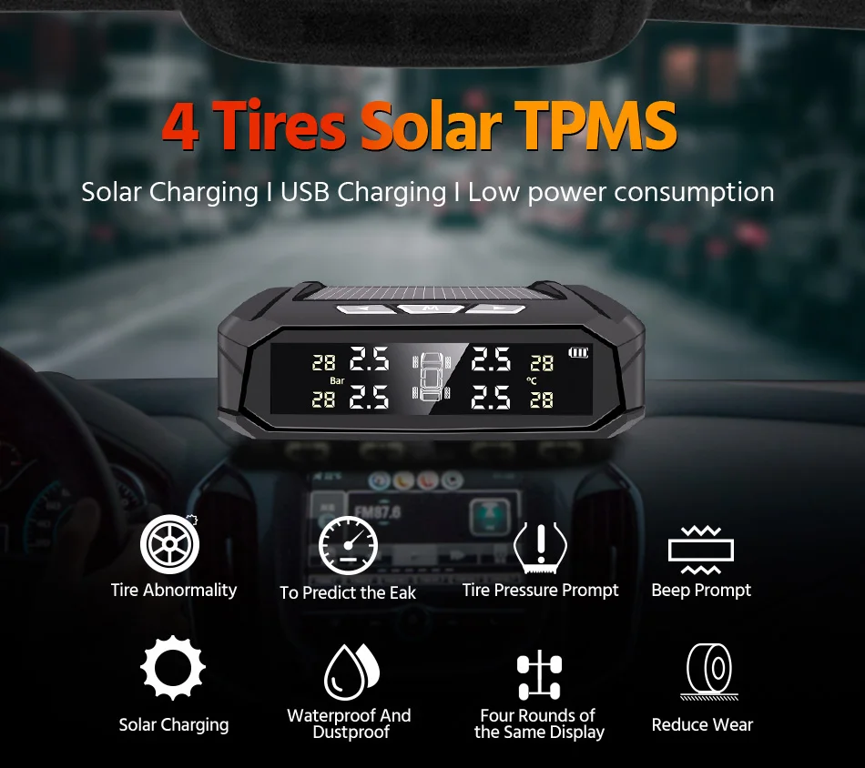 Интеллектуальное давление в автомобильных шинах Solar TPMS. Точное раннее предупреждение, более безопасное вождение, более обнадеживающее.