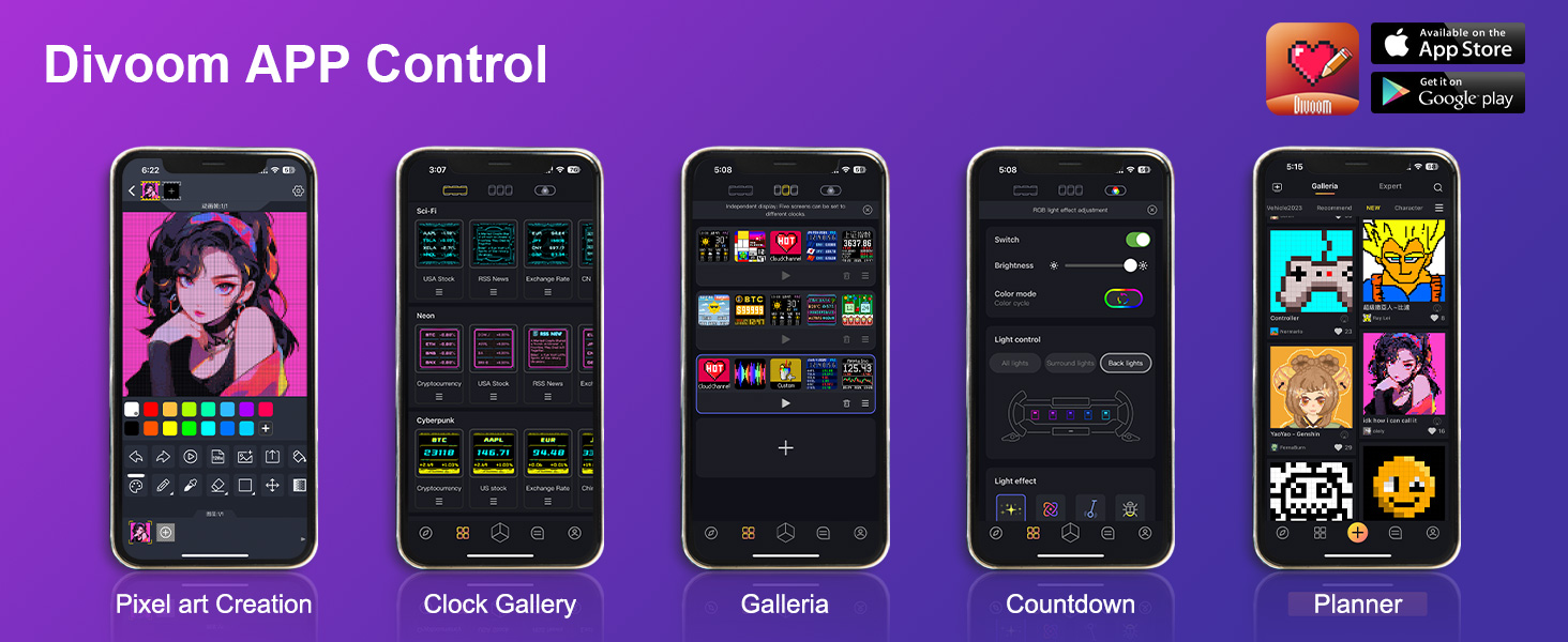 Это пиксельный художественный дисплей, который можно настроить под любое пиксельное искусство, которое вам нравится на экране. В нашем приложении предлагается множество вариантов-изображения DIY, анимация, прокрутка текста и т. Д.