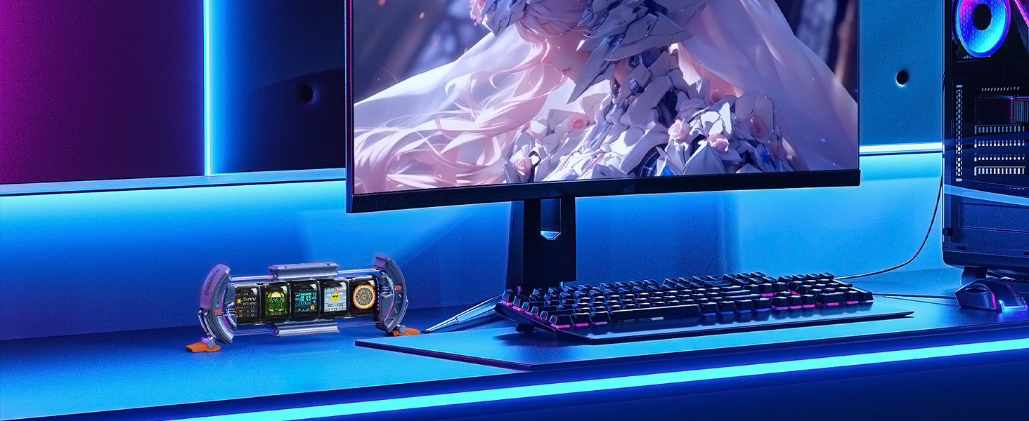 Times Gate, вдохновленный будущим технологий, состоит из 5 полноцветных ЖК-дисплеев. Этот футуристический световой Декор добавит красок вашим планкам и рабочему пространству, а также имеет множество ярких обновленных функций.