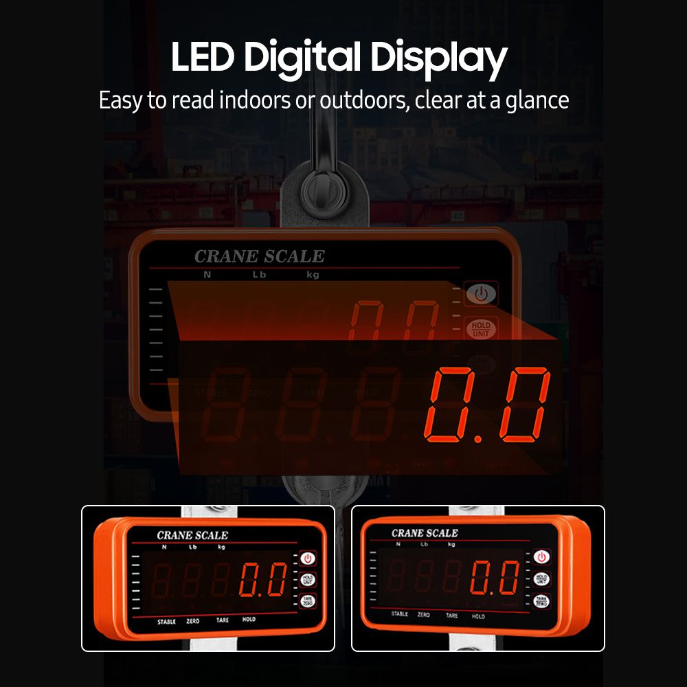 5-Разрядный светодиодный Дисплей-Большой светодиодный Дисплей с 5-разрядный красный шрифты,легко читать с далеко или в темное время суток; яркость дисплея можно регулировать с помощью пульта дистанционного управления для экономии энергии. Масштаб крана питается от 4 батареек AA.