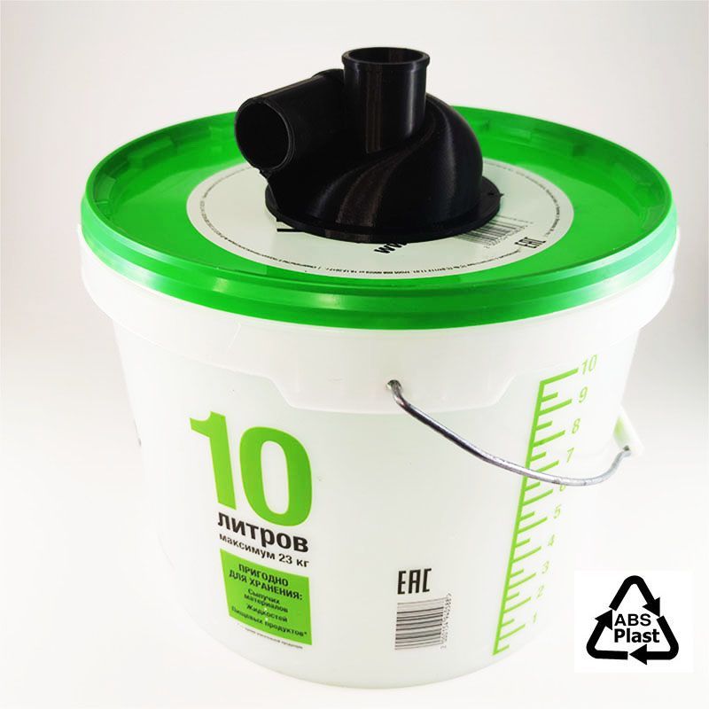 Если вы хотите установить циклон на ведро, нет проблем. Откручиваем нижнюю часть, вырезаем отверстие D 100 мм и собираем через крышку. Понадобятся болты, чуть длиннее.