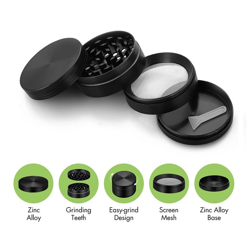 Цинковый сплав, дымовая ткань, диаметром 40 мм, 4-слойная металлическая мельница, аксессуары для курения