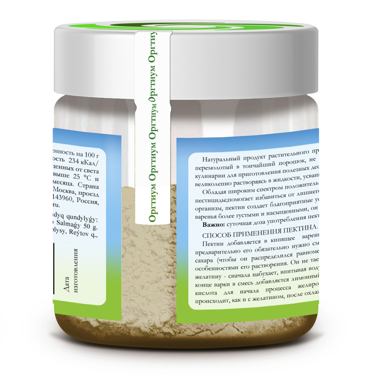 Описание: Натуральный продукт растительного происхождения, добываемый из спелых цитрусов, пектин, перемолотый в тончайший порошок, не имеет выраженного запаха и окраски. Используемый в кулинарии для приготовления полезных десертов —  мармелада, зефира, пастилы, цитрусовый пектин, великолепно растворяясь в жидкости, усваивается организмом, даря чувство сытости надолго. Обладая широким спектром положительного воздействия, он выводит токсины, тяжелые металлы, пестициды; помогает избавиться от лишнего веса; нормализует работу кишечника. Бережно очищая организм, пектин создает благоприятные условия для роста полезной микрофлоры. Делая джемы и варенья более густыми и насыщенными, он сводит к минимуму количество используемого сахара.