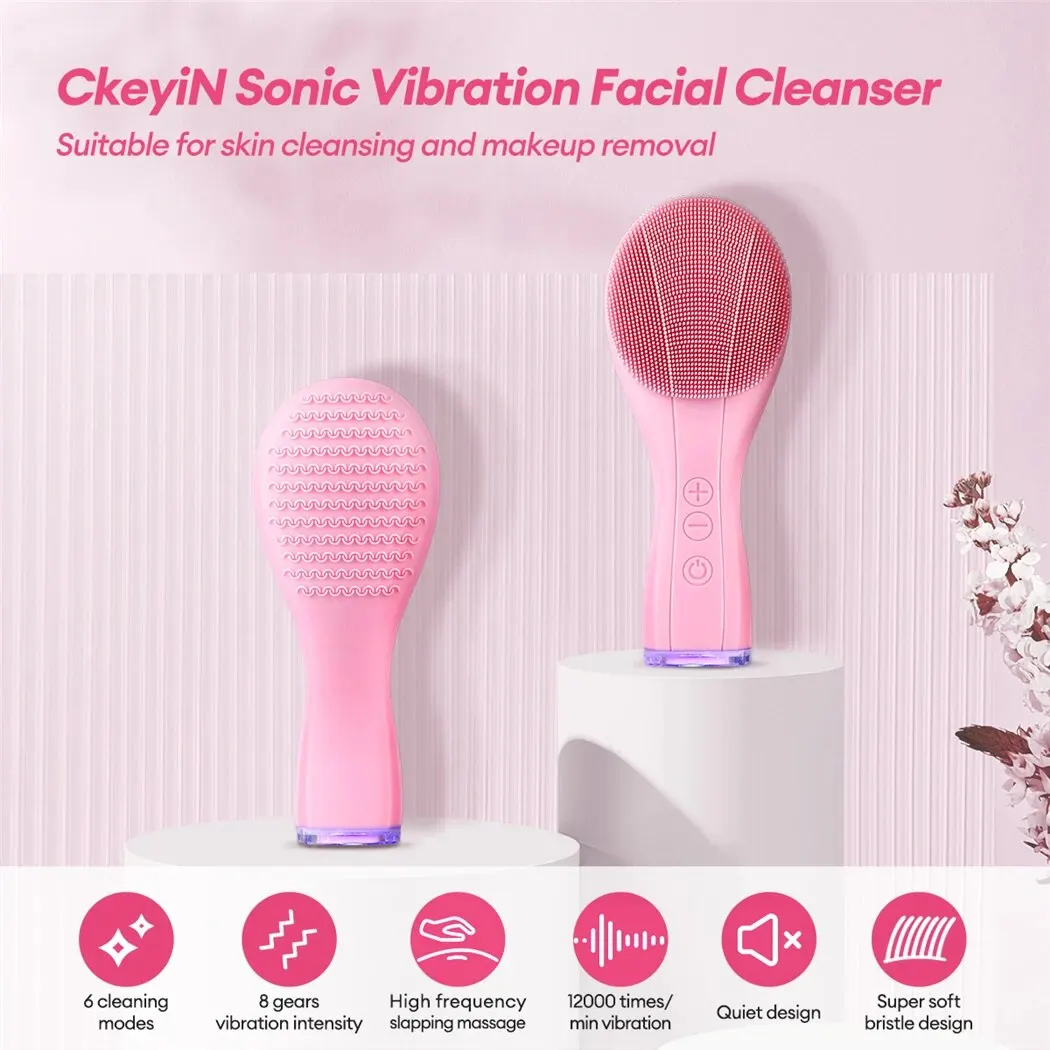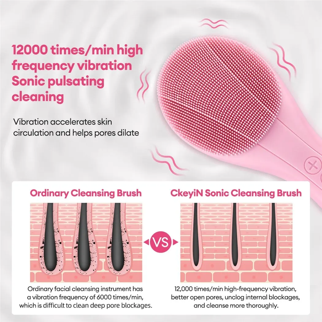 Ckeyin электрическая щетка для чистки лица Силиконовый ультразвуковой инструмент для чистки лица Водонепроницаемый высокочастотный вибрирующий массажер уход за кожей