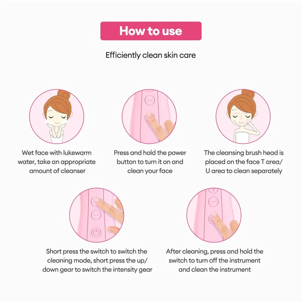 Двусторонняя Насадка-щетка, передняя часть используется для очистки лица, глубокой очистки кожи, удаления грязи с лица, масла и остатков макияжа, А другая сторона используется для массажа и подтяжки лица, улучшения кровообращения и метаболизма кожи, а также лучшего впитывания средств по уходу за кожей.
