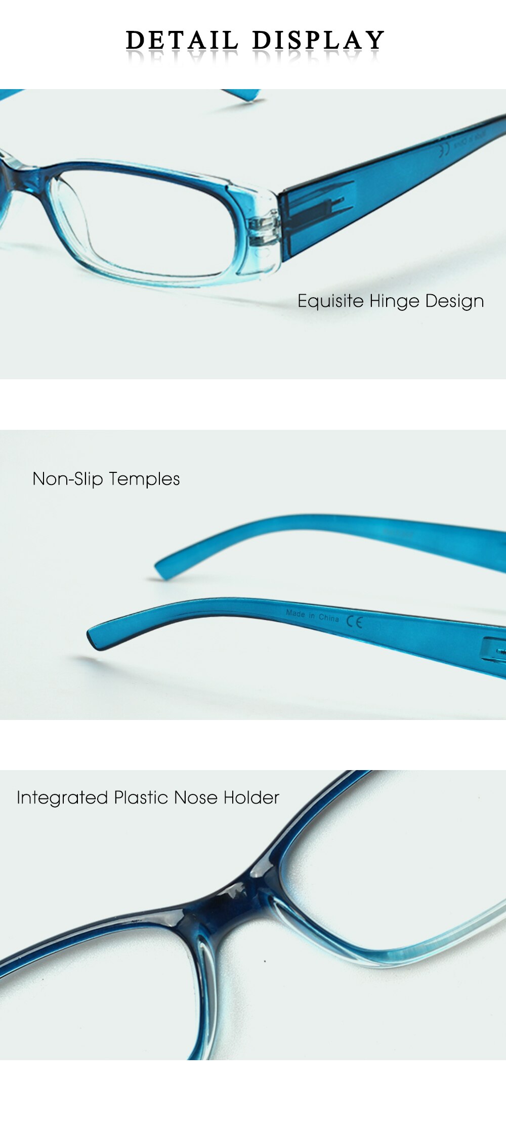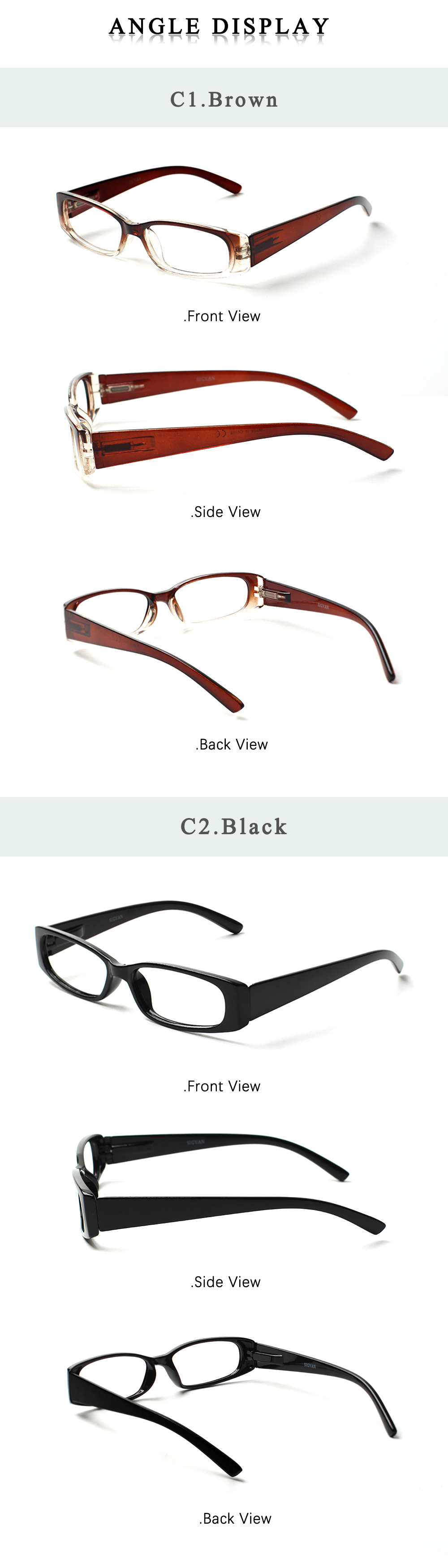 • Эти очки для чтения с прямоугольной оправой стильные и элегантные, с легким дизайном оправы и отличными носоупорами, которые не создадут дискомфортное сжатие, идеально подходят для офисного кабинета, повседневного чтения и многого другого.