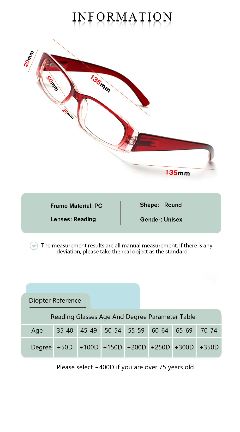 • Классические Стильные очки для чтения в рамке обновляются с веселым и красочным дизайном. Универсальный размер подходит для большинства форм лица.