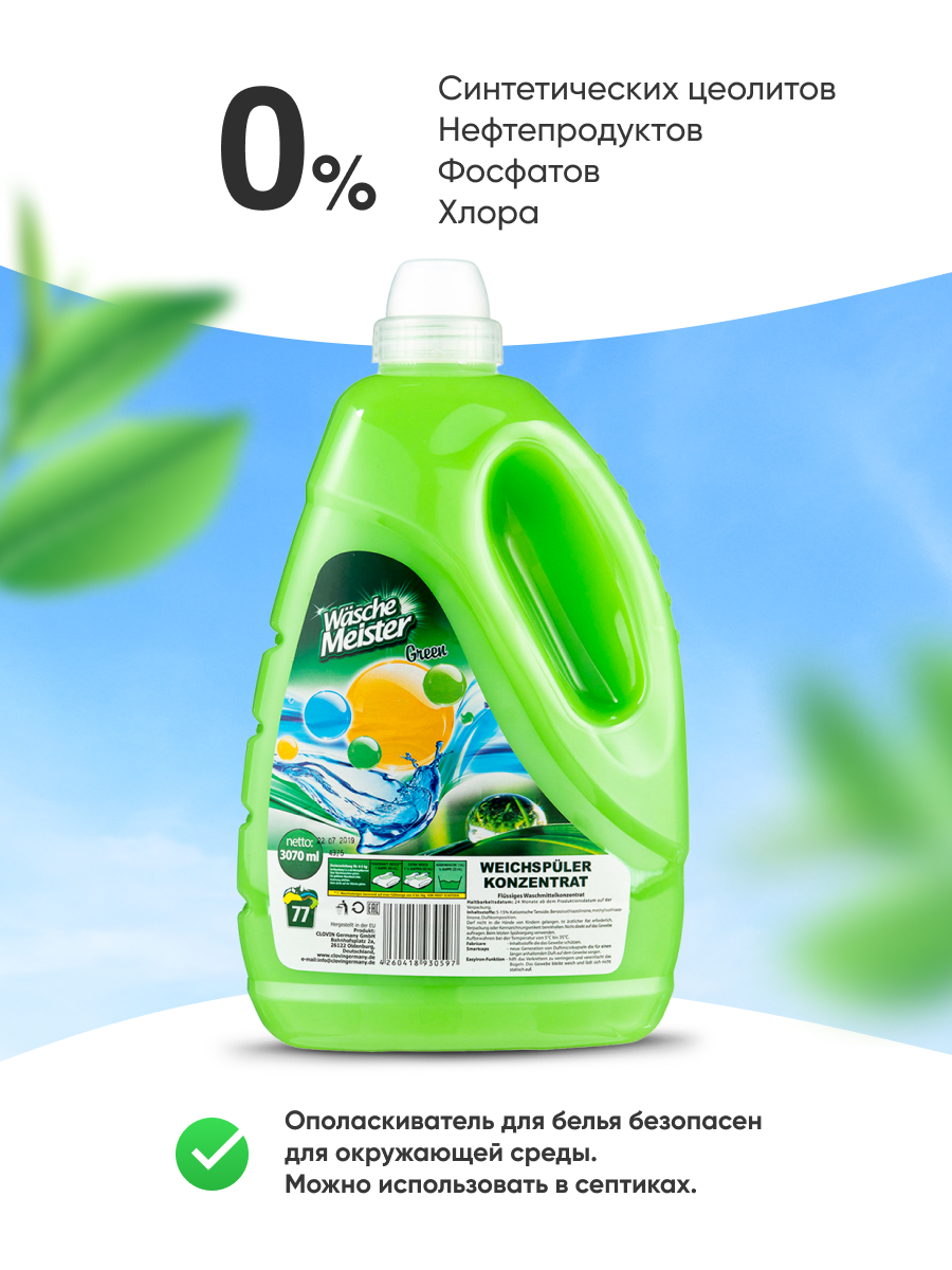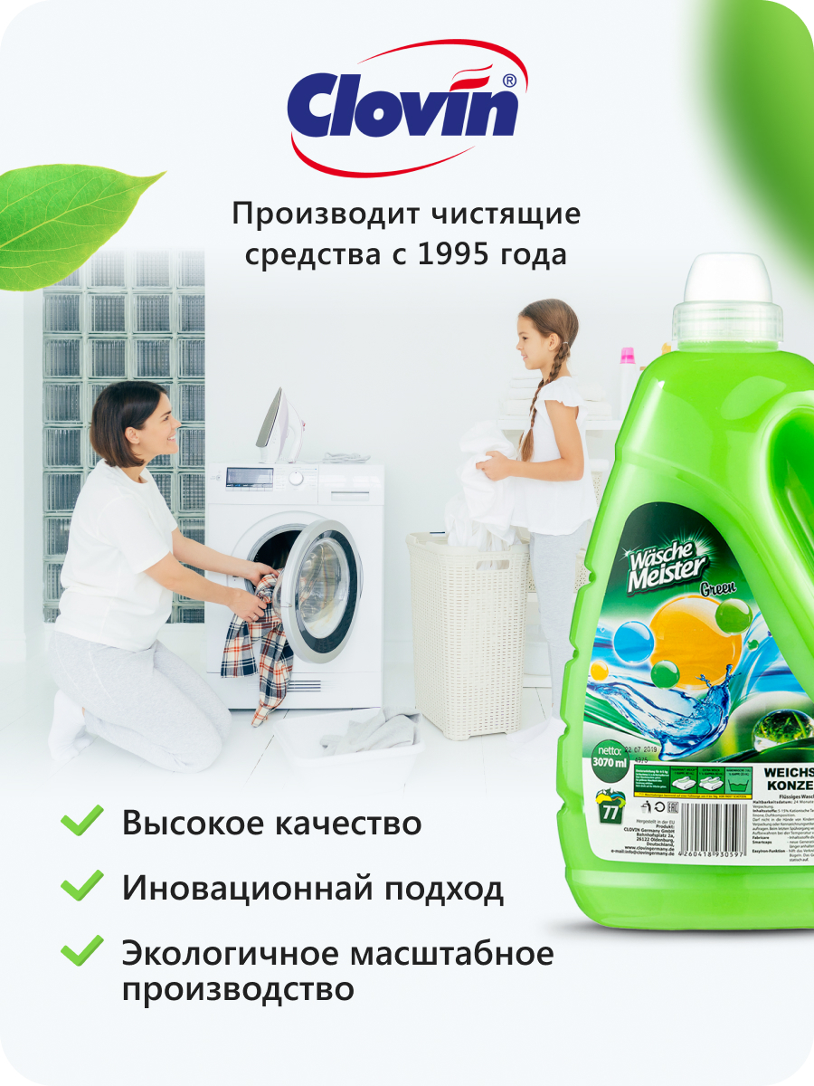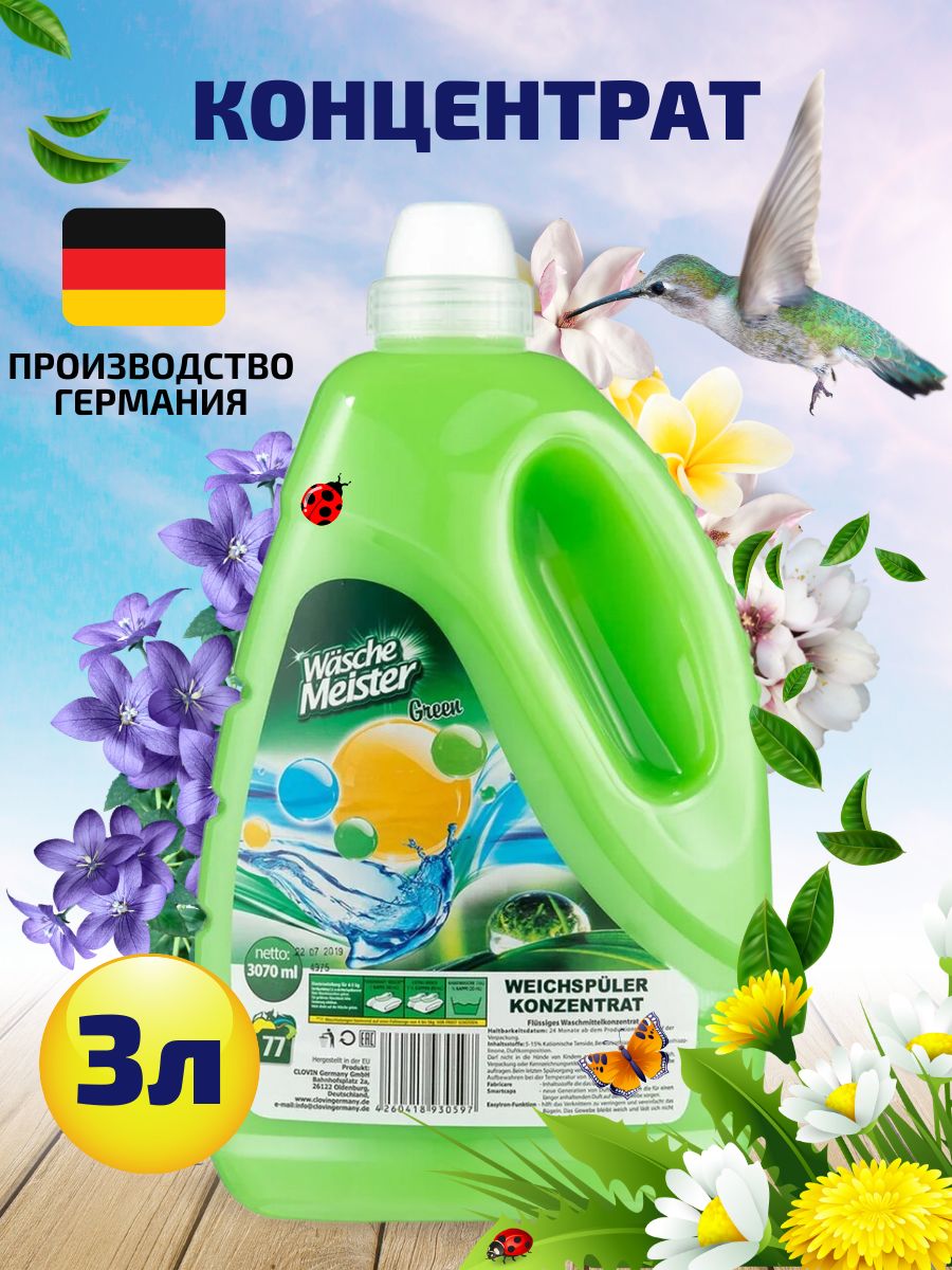 Clovin Кондиционер ополаскиватель для белья Wasche Meister Весенний сад 3070 мл концентрат (77 стирок) Германия