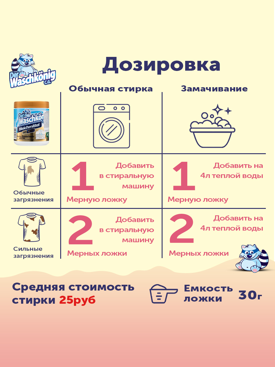 Описание: Отбеливатель кислородный Clovin Der Waschkonig Oxy Kraft порошковый 750 г (Германия)