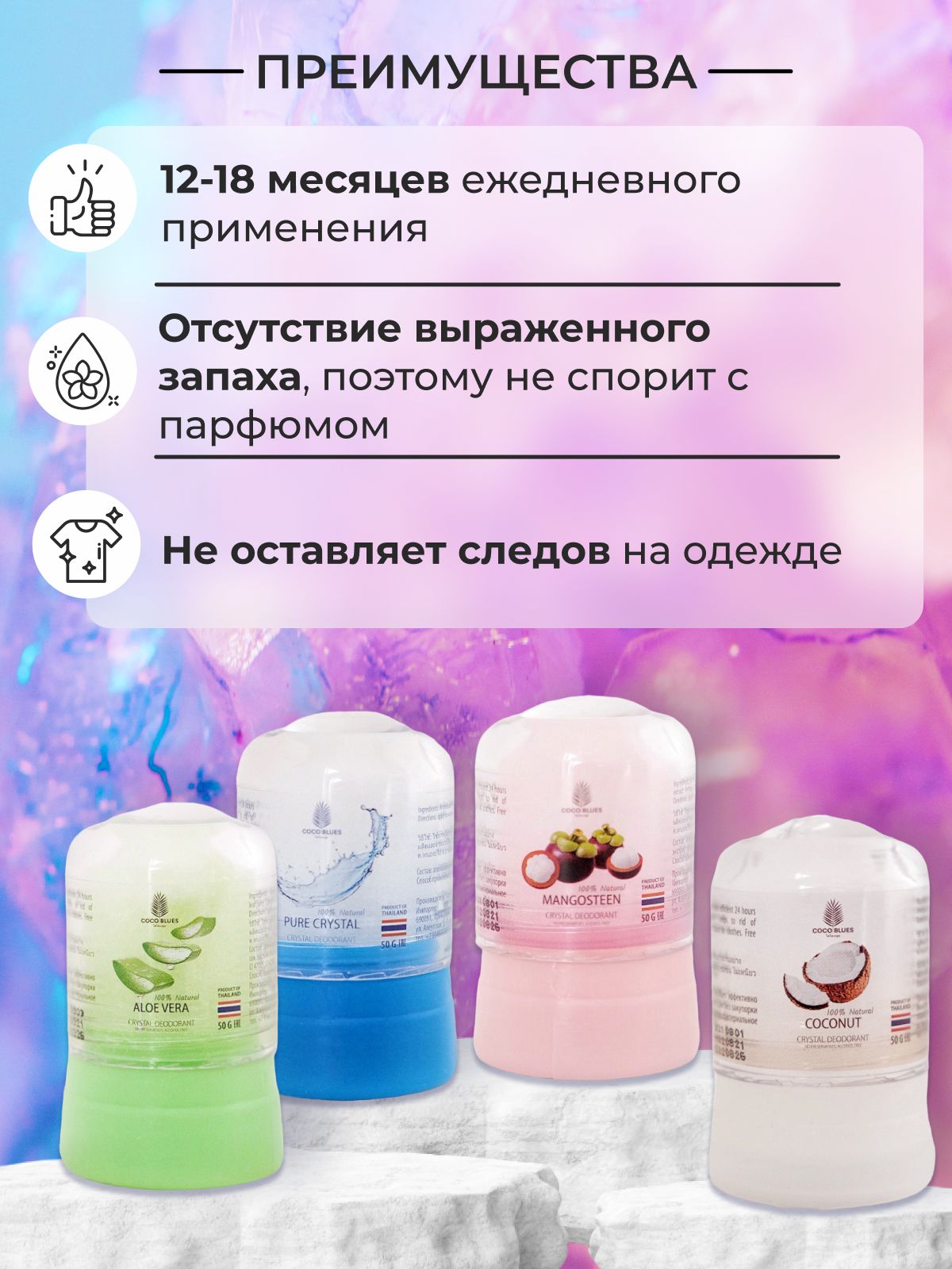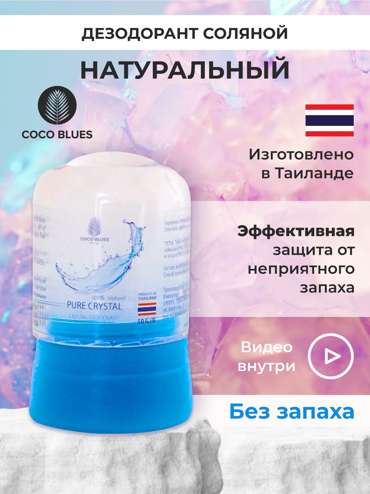COCO BLUES Тайский натуральный дезодорант кристалл соляной против запаха пота для женщин и мужчин 50 гр.