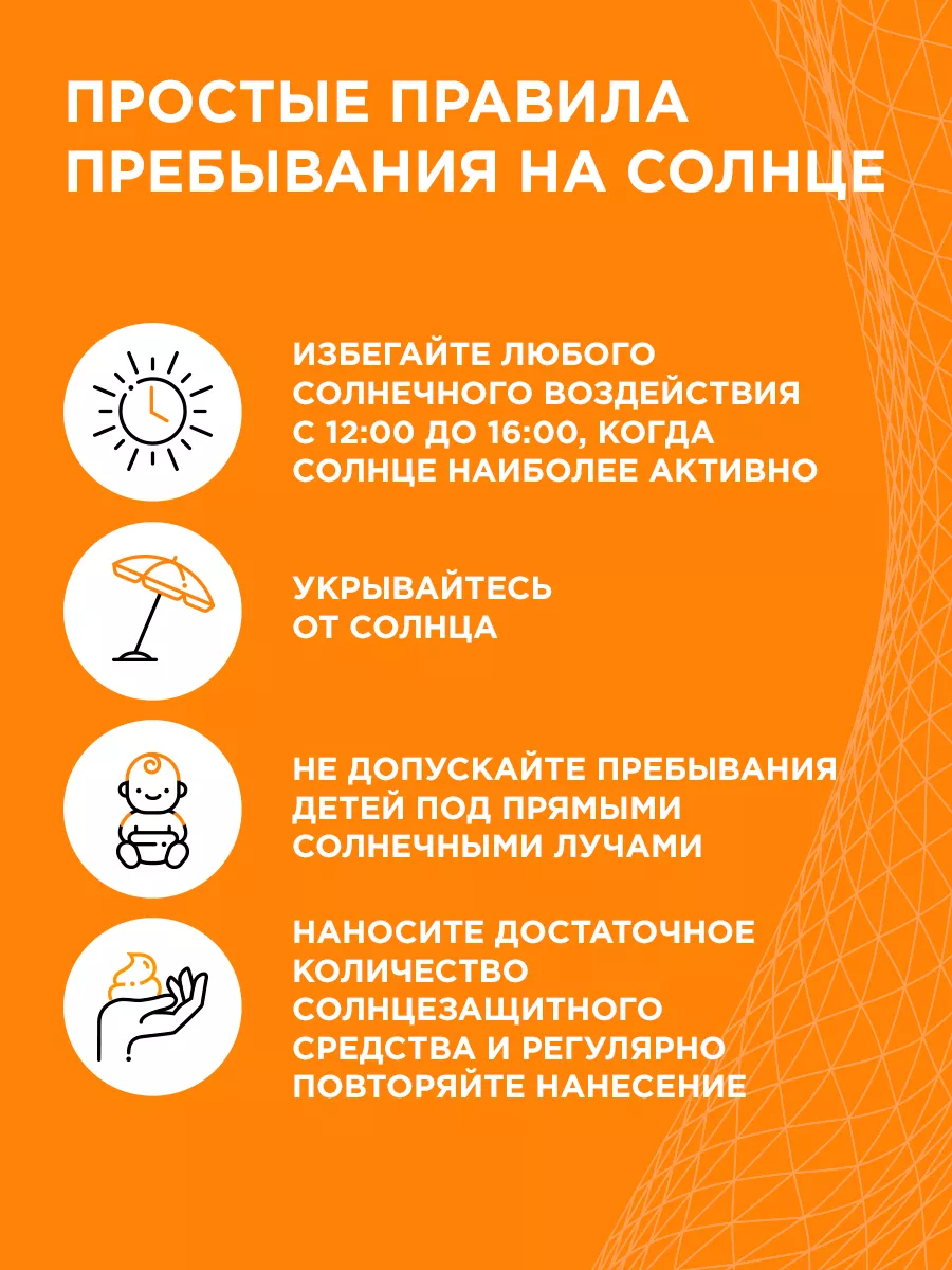 Действие солнцезащитное; водостойкость; защита нежной детской кожи от UVA- и UVB-лучей