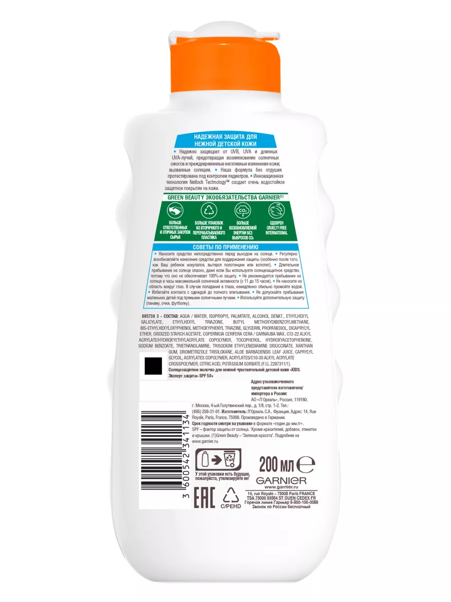 Cолнцезащитное молочко для детей СПФ 50+ водостойкое 200 мл