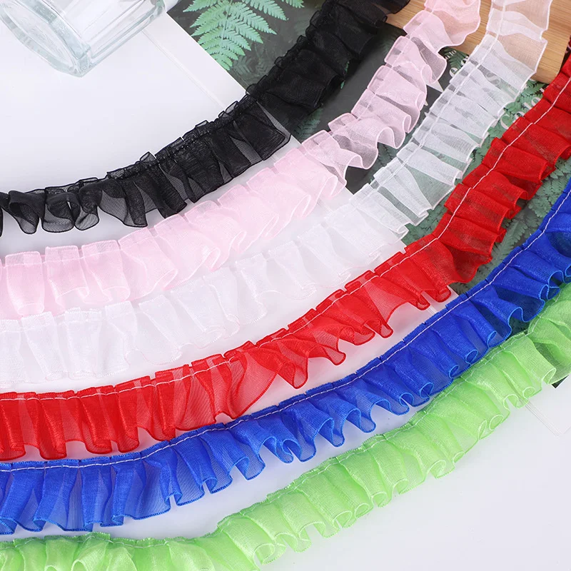 Color Transparent Glass Yarn Pleated Ruffle Lace DIY Children's Toy Pet Clothes Fluffy Cake Skirt Lolita Dress Sewing Materials