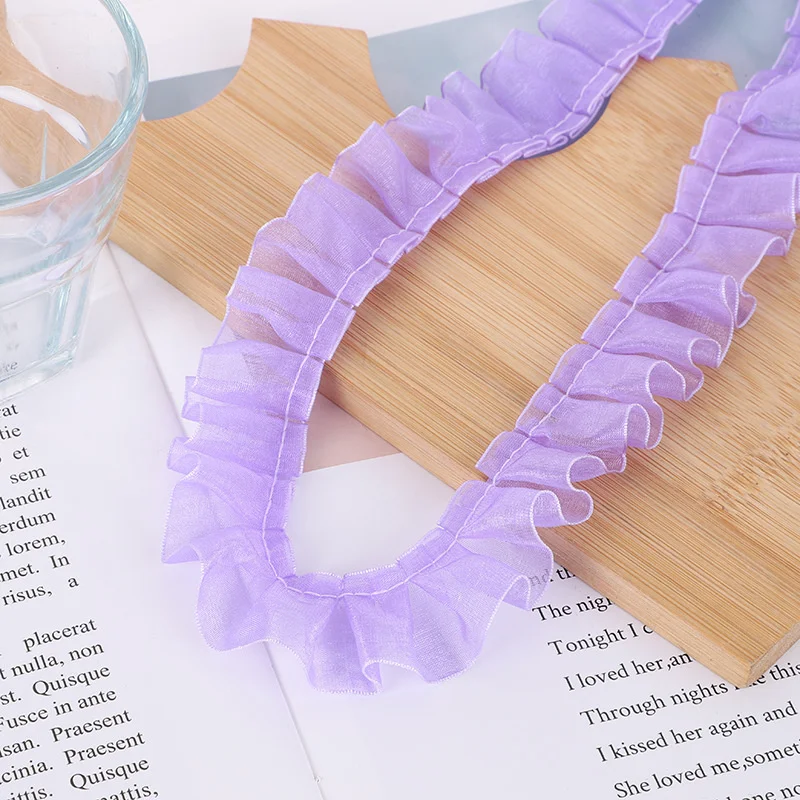 Product name: 10-colour glass yarn pleat lotus edge lace ribbon