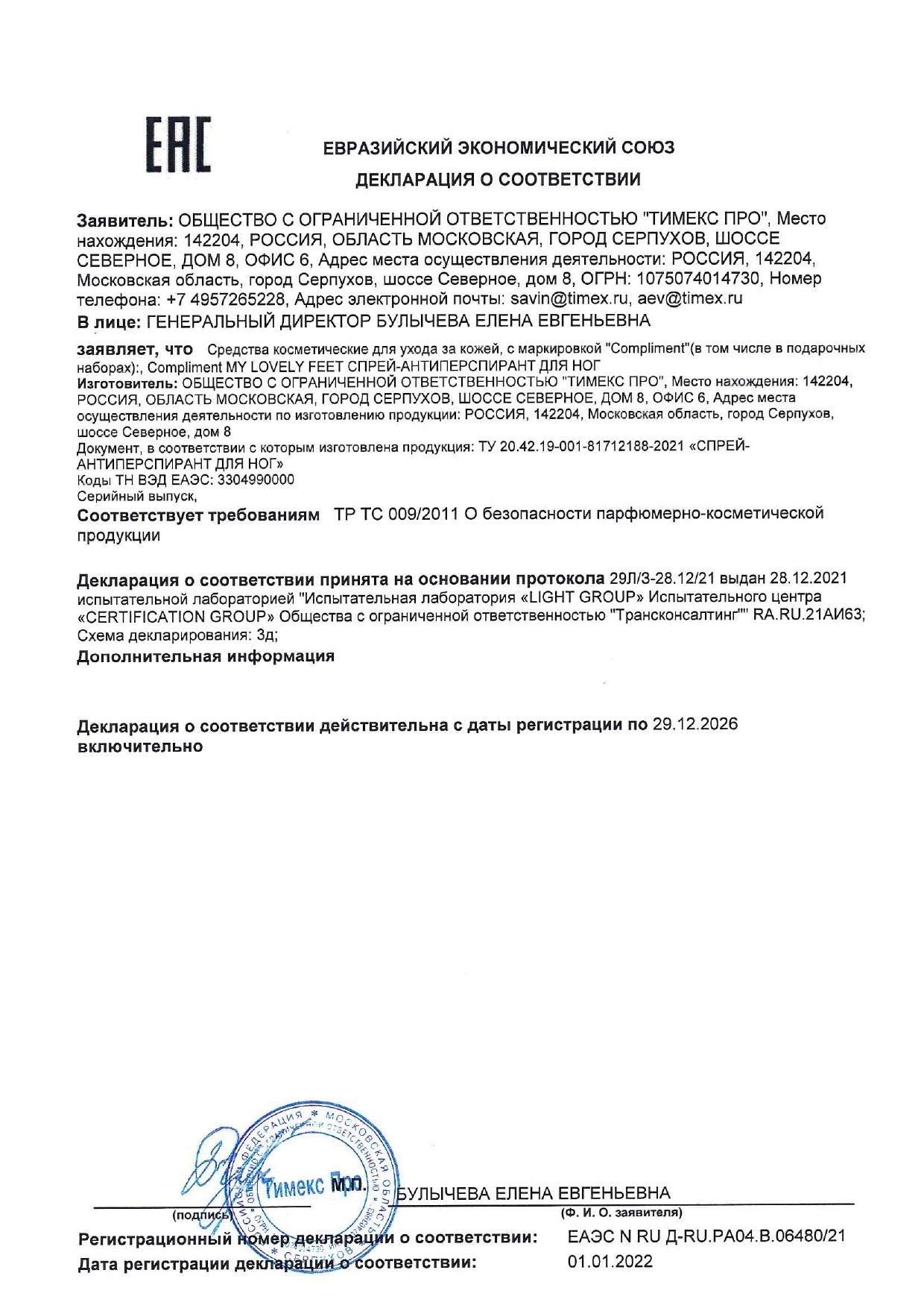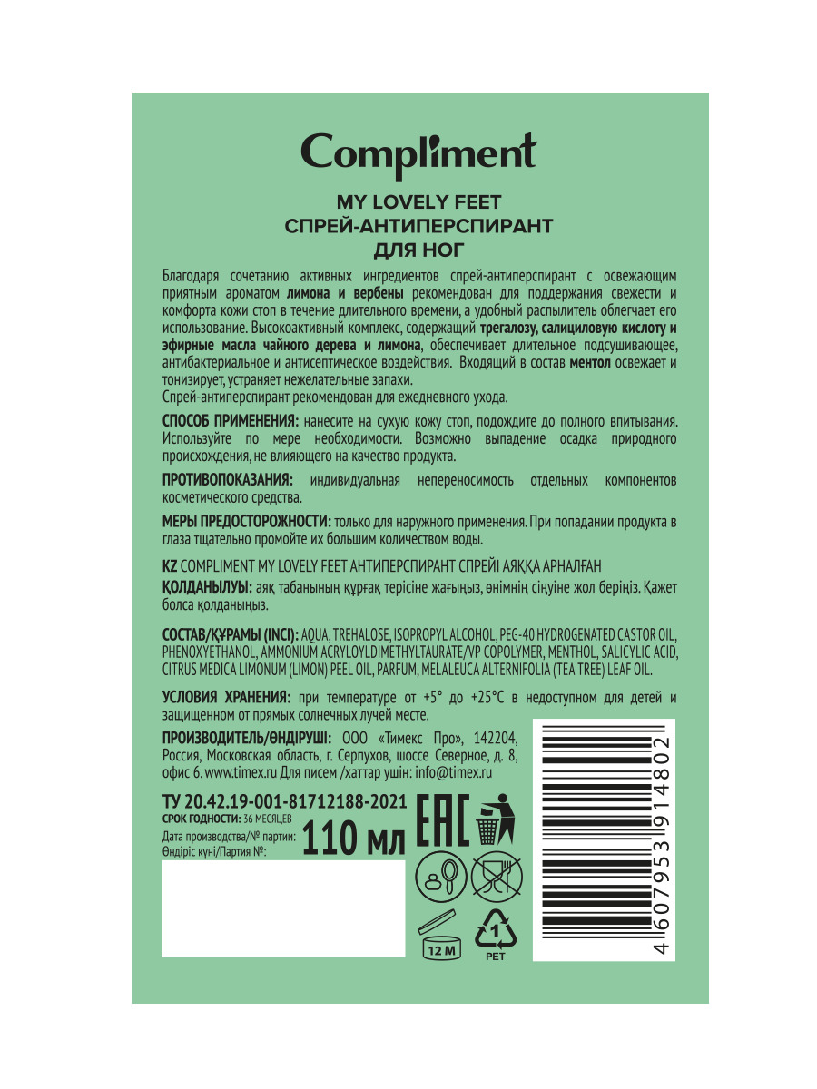 Compliment MY LOVELY FEET Спрей-антиперспирант для ног, 110мл