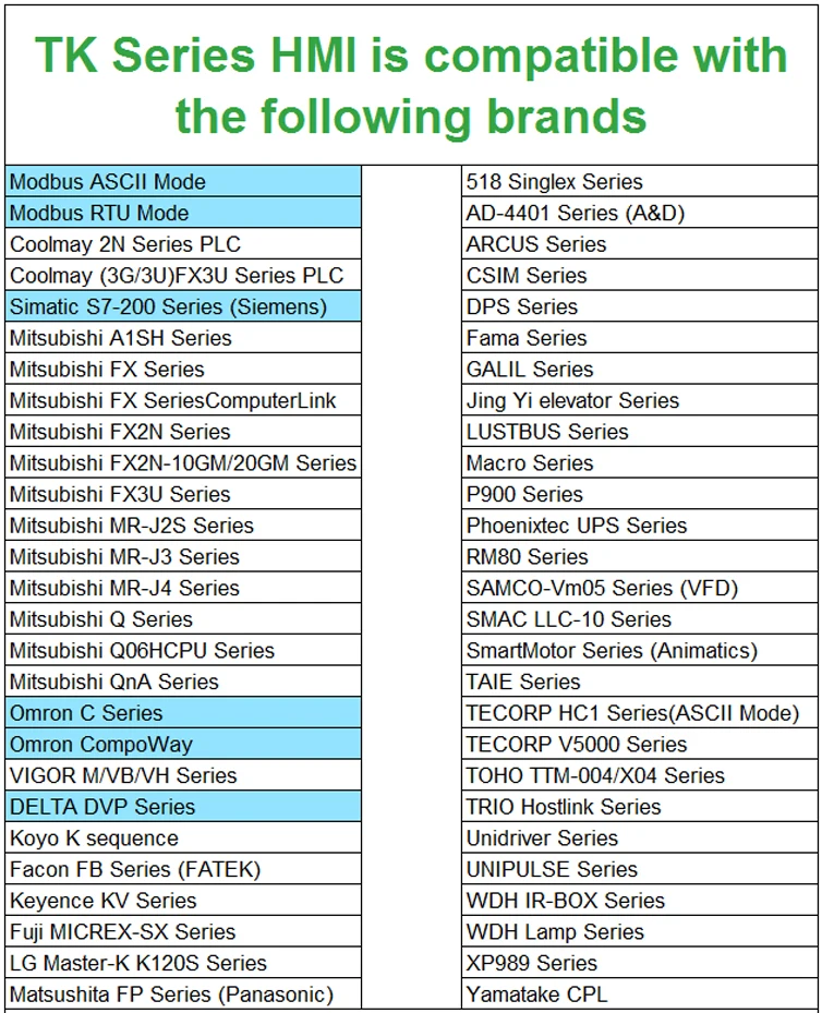 • Поддержка модшины, свободного порта и общего протокола связи ПЛК.