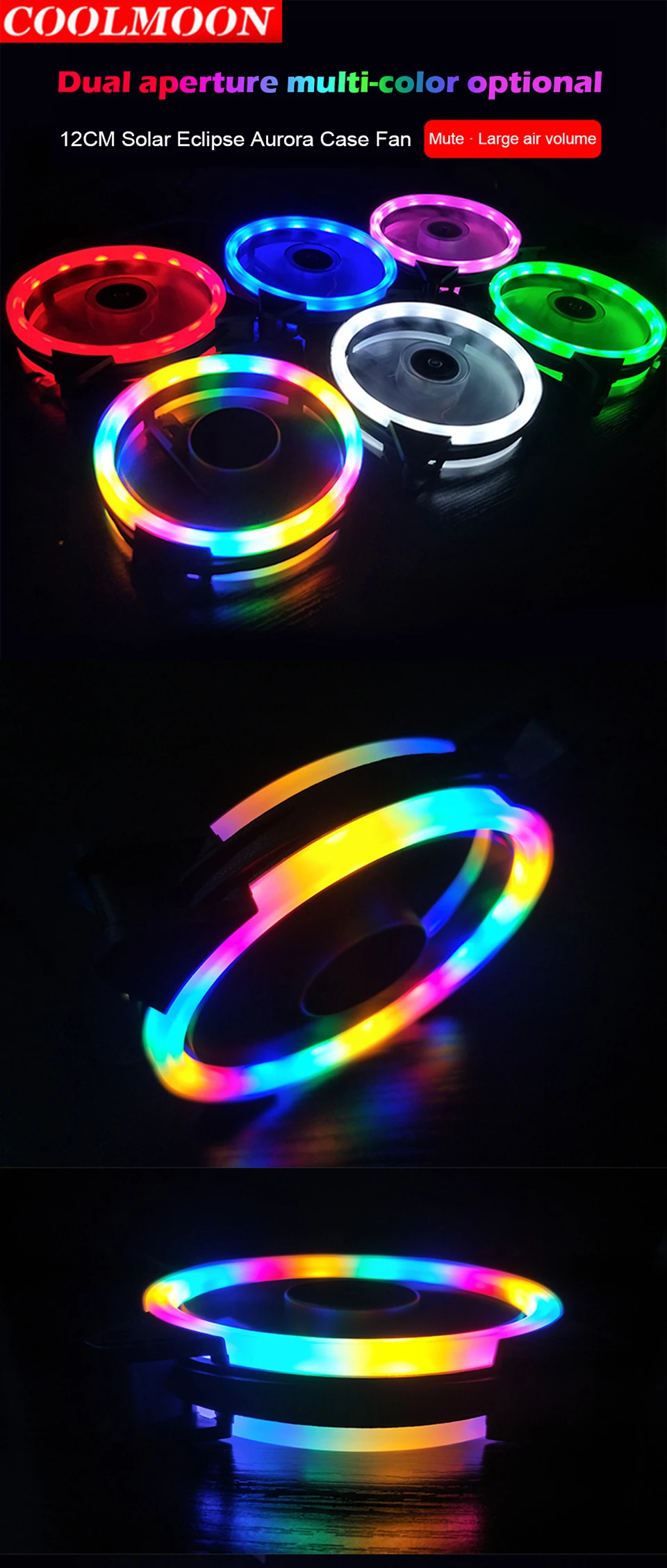 COOLMOON-вентилятор с двойной диафрагмой, компьютерный чехол, охлаждающий вентилятор Aurora Solar Eclipse, бесшумный настольный компьютер, чехол, вентилятор 120 мм