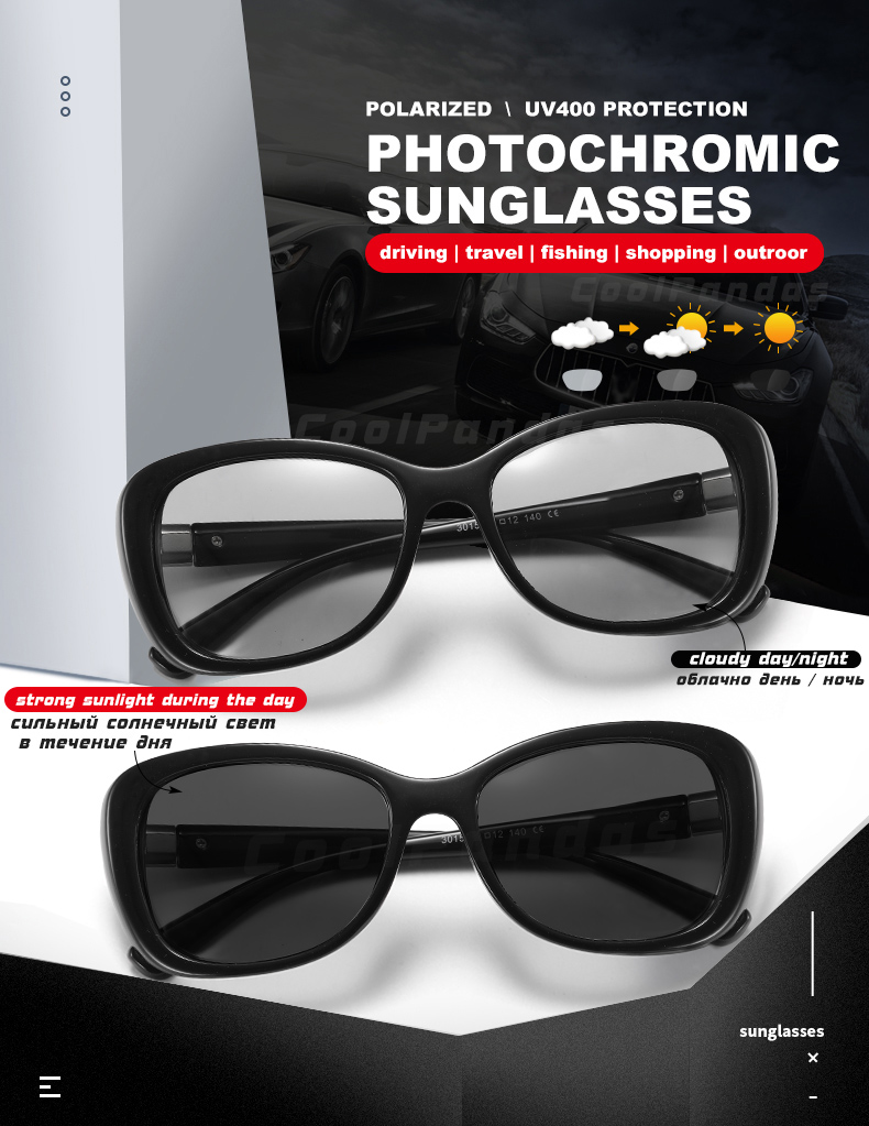 CoolPandas Модные женские солнцезащитные очки поляризационные очки фотохромные женские хамелеоновые очки антибликовые женские очки