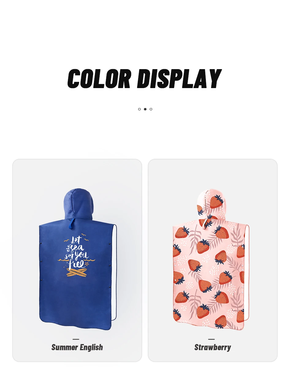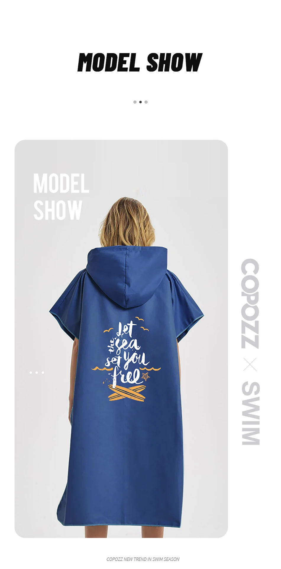 Полотенце-пончо для плаванья для серфинга, не только обеспечивает некоторую конфиденциальность во время смены и выхода из Гидрокостюма, но также обеспечивает необходимую защиту от холода! Есть кнопки под подмышкой. Нажатие кнопок может лучше покрыть корпус
