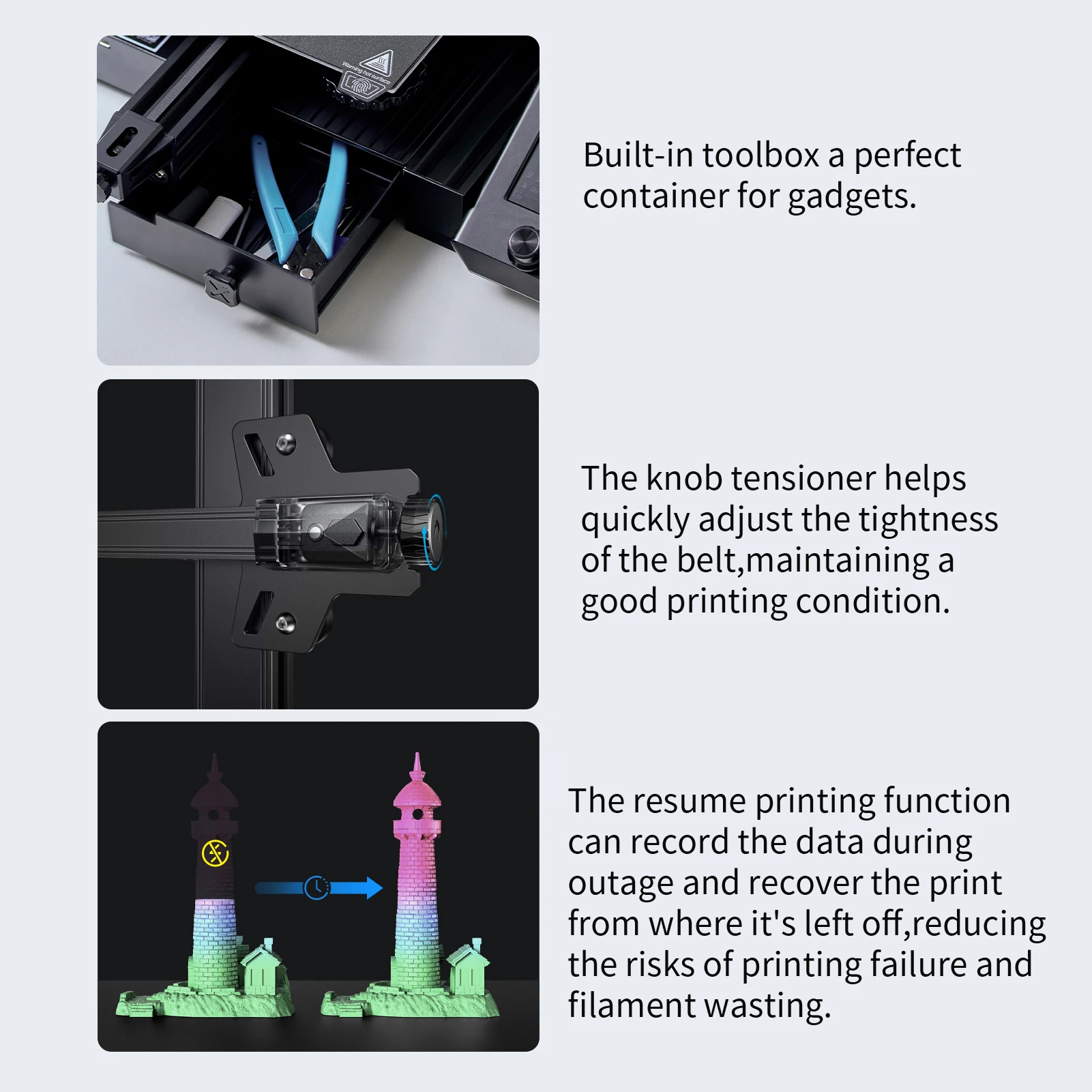 ▶Дополнительные функции: 4,3-дюймовый экран с цветной ручкой имеет Значки для лучшего понимания; Он автоматически затемнится для экономии энергии. А с помощью ручки натяжителя помогает быстро отрегулировать натяжение ремня, поддерживая хорошее состояние печати.