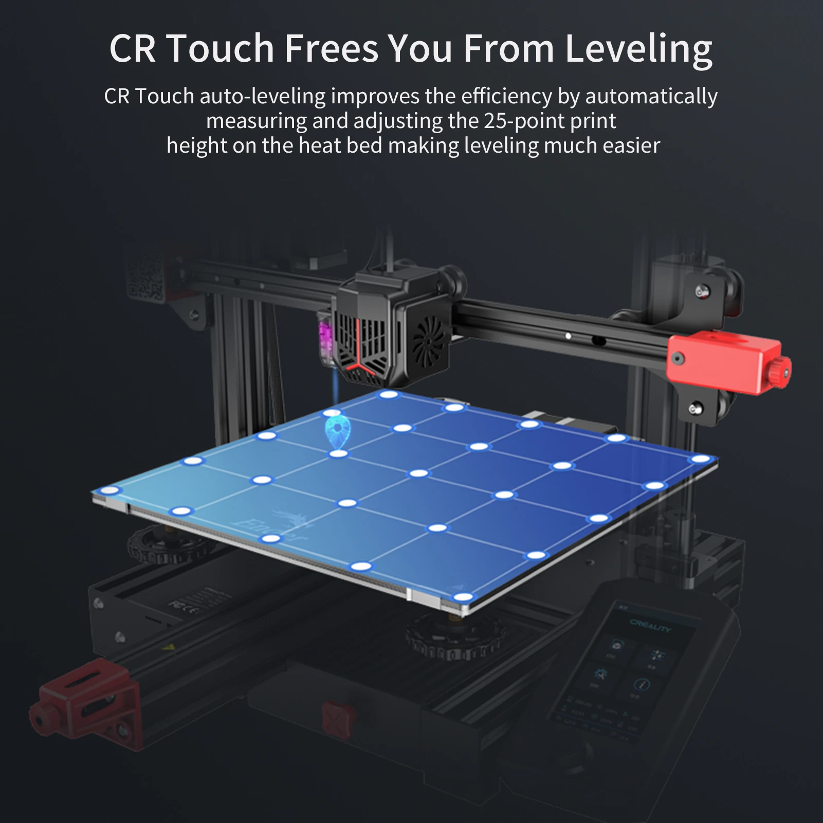 ▶Эффективное выравнивание: с помощью CR Touch высота печати между соплом и поверхностью сборки может быть автоматически измерена и отрегулирована, что упрощает шаг выравнивания.