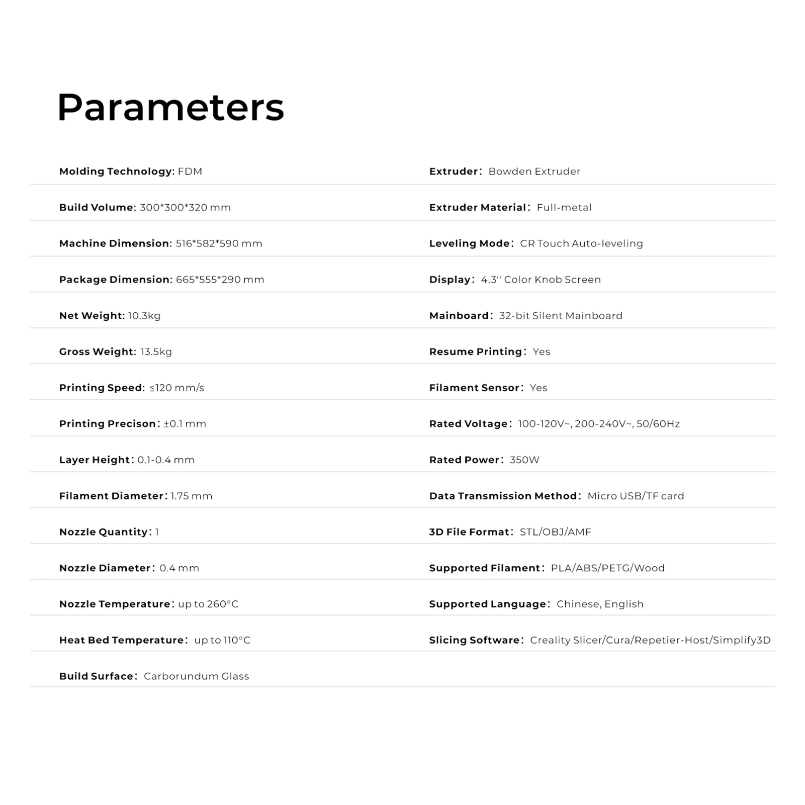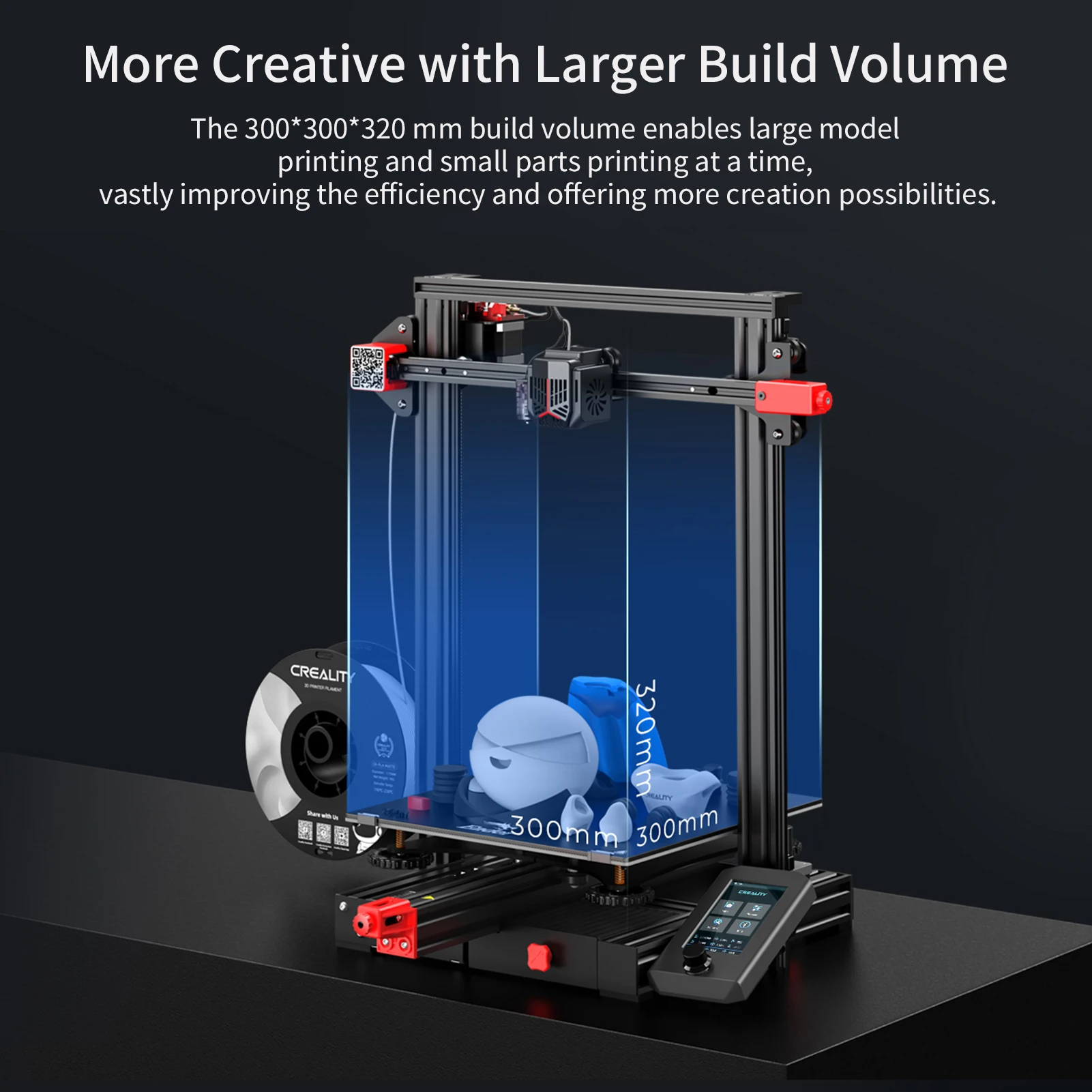 ▶Большой объем сборки: объем сборки 300*300*320 мм достаточно просторен для одновременной печати моделей большого размера или некоторых мелких деталей. Поддерживающие нити, такие как PLA/ABS/PETG/Wood.