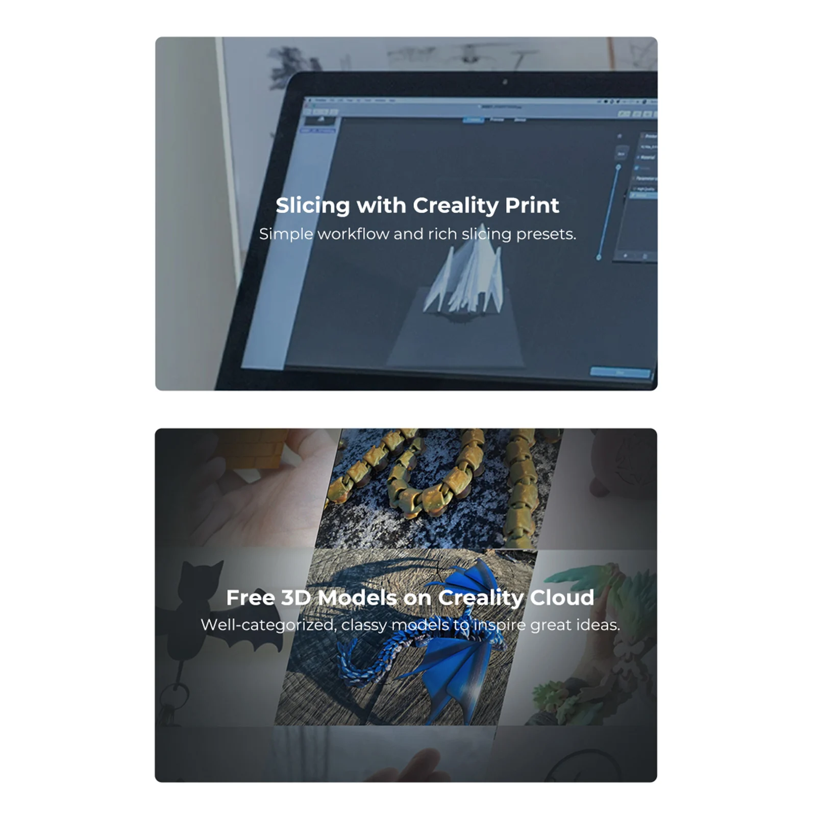 Простота в использовании: совместимость с Windows, Mac OS, системой Linux и Creality Print, Cura 5,0 или более новой версией, Simplify3D все эти профессиональные программы могут проектировать и редактировать ваши модели.
