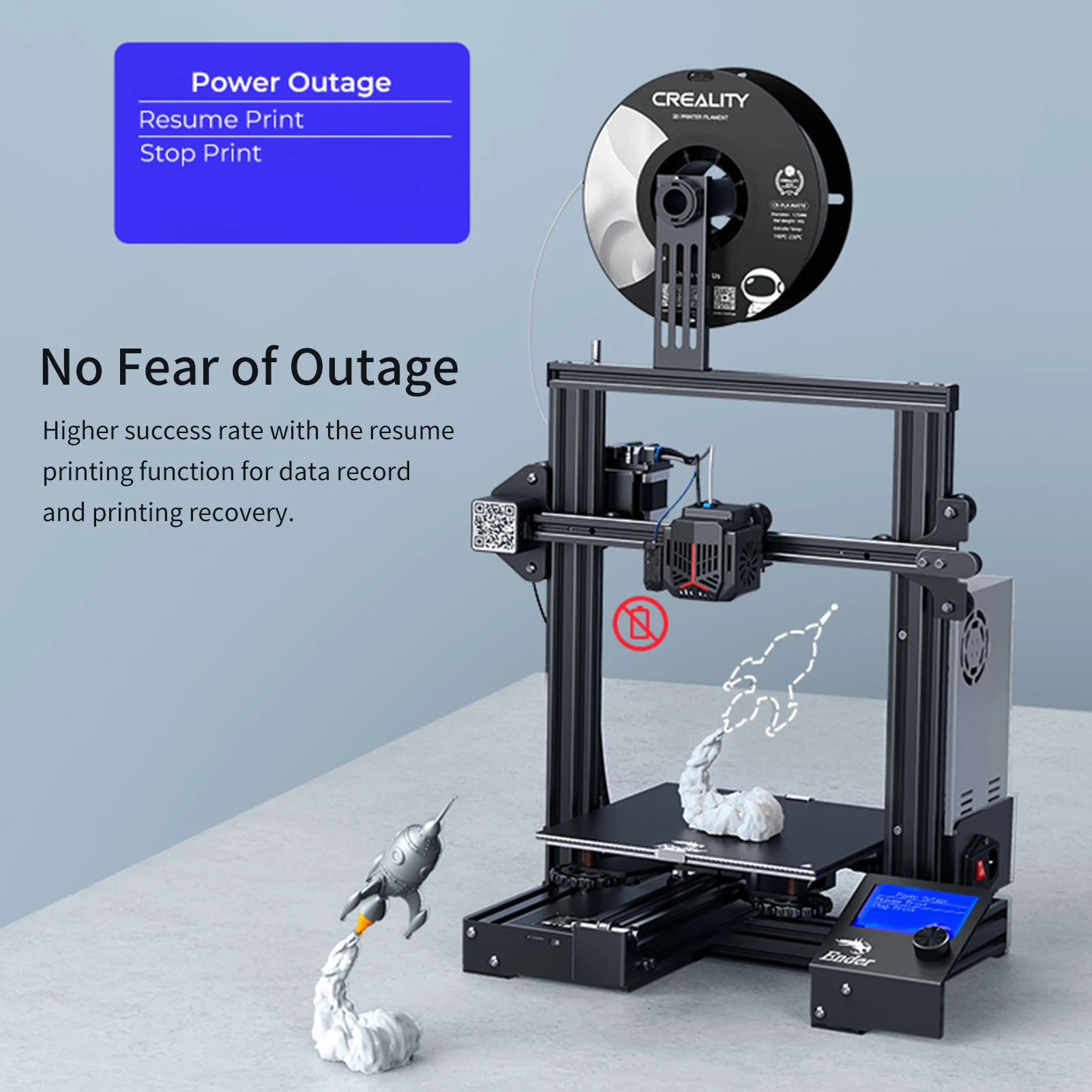 Надежно защищенный источник питания и функция возобновления печати, если машина выключена или случайно отключена, она может продолжить печать после включения.