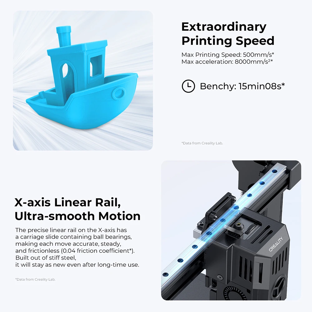 ♦Исключительная производительность печати: Максимальная скорость печати может достигать 500 мм/с при ускорении 8000 мм/с², что позволяет эффективно завершать модели. Благодаря обновлению превосходного хотэнда Ender-3 V3 KE может печатать быстрее при более высокой температуре. И двойные вентиляторы быстро и равномерно охлаждают только что напечатанный участок, ваши отпечатки всегда в хорошей форме.