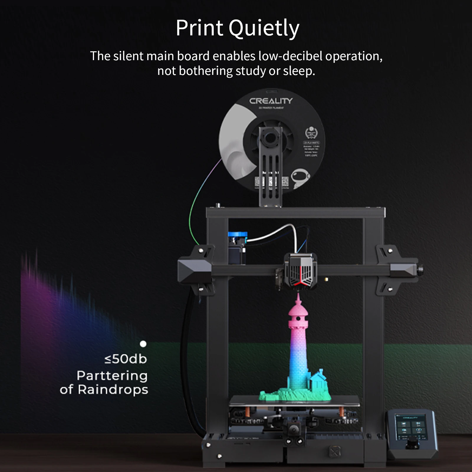 ▶Ультра-стабильность & ультра-тихо: двойные оси Z увеличивают стабильность. Хорошая координация с зубчатым ремнем и двумя двигателями создает идеальные условия для устойчивого движения и качественной печати. Оснащен 32-битной бесшумной материнской платой, которая снижает шумовое воздействие до 50 дБ, наслаждайтесь печатью и получайте удовольствие!