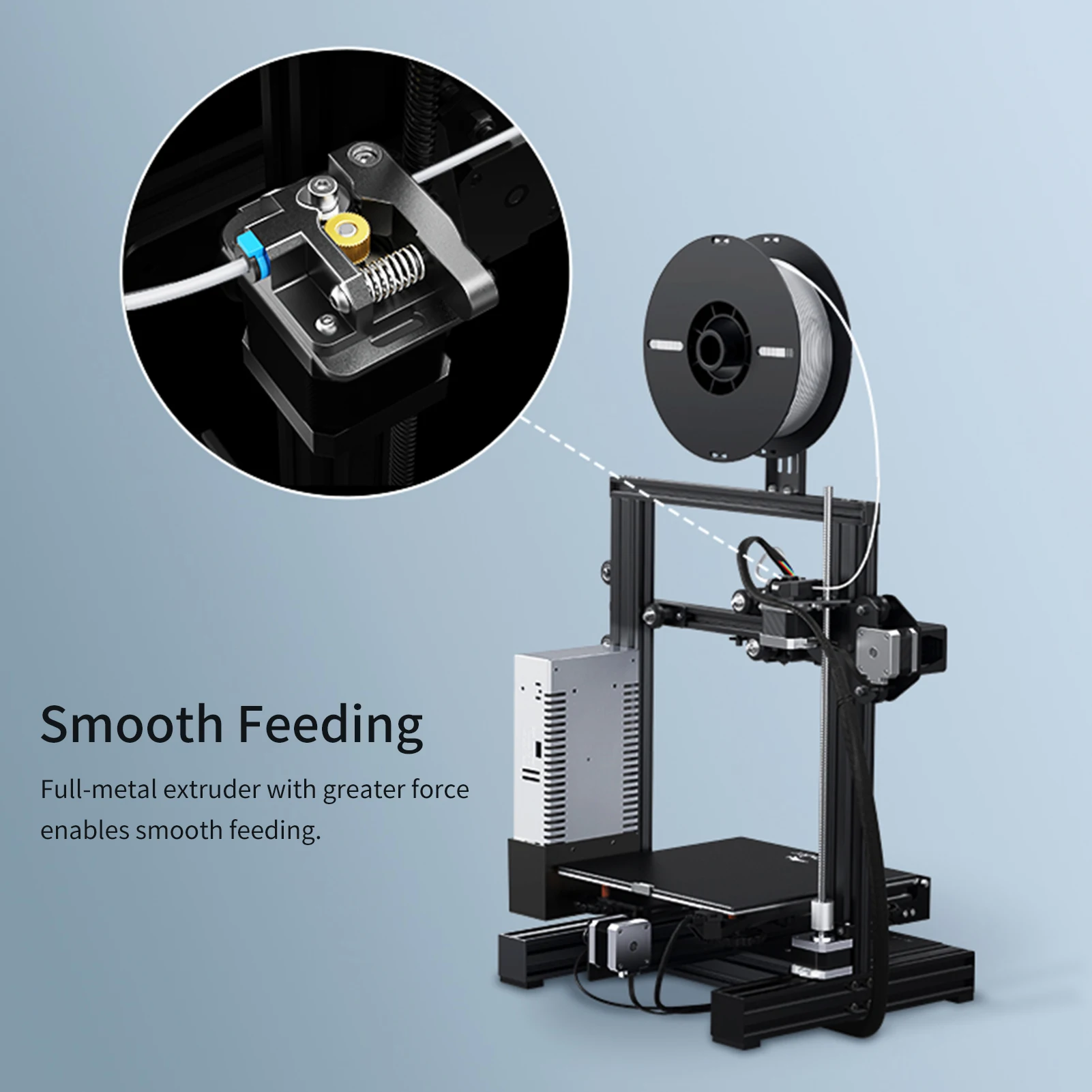 ▶Цельнометаллический Экструдер: цельнометаллический экструдер имеет большую силу экструзии и более прочный, обеспечивает плавную подачу. Бесшумная материнская плата собственной разработки всегда обеспечивает плавное движение при 50 дБ, отсутствие шума во время печати.