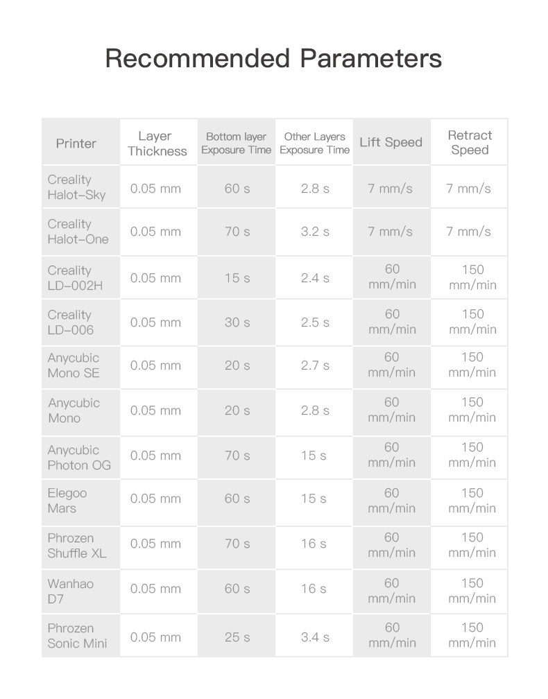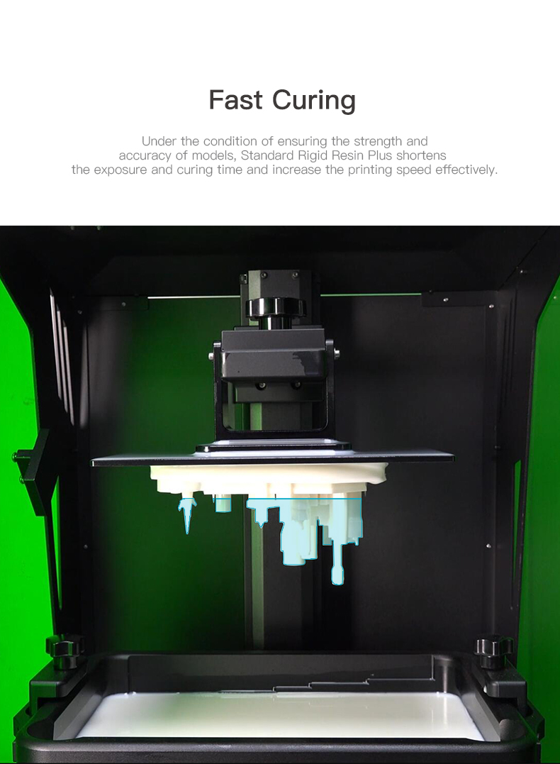 ✨При условии обеспечения прочности и точности моделей Standard Rigid Resin Plus сокращает время выдержки и отверждения и эффективно увеличивает скорость печати.