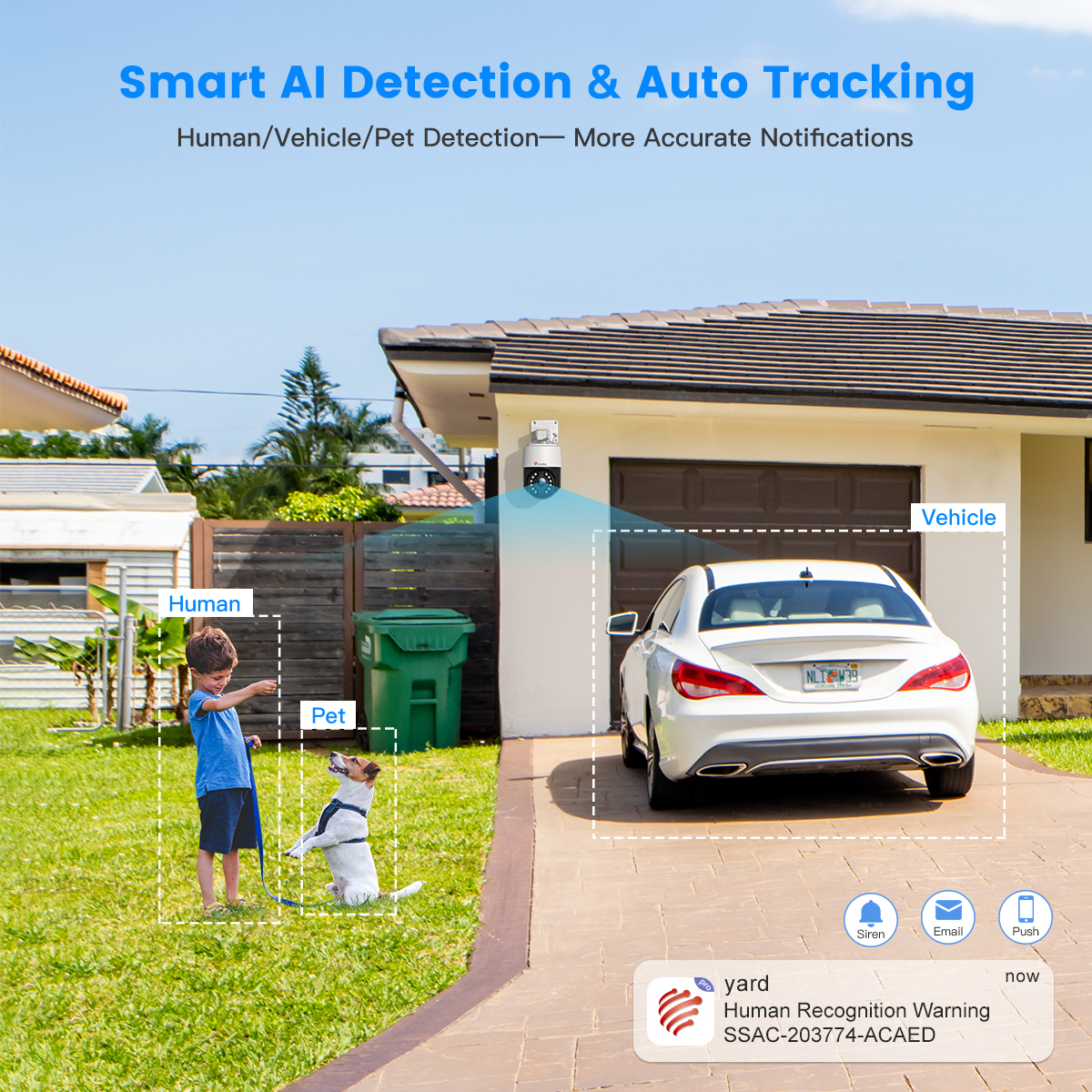 Эта камера наблюдения с поддержкой Wi-Fi 4K может идентифицировать людей, транспортные средства и домашних животных с помощью точных сигналов тревоги.