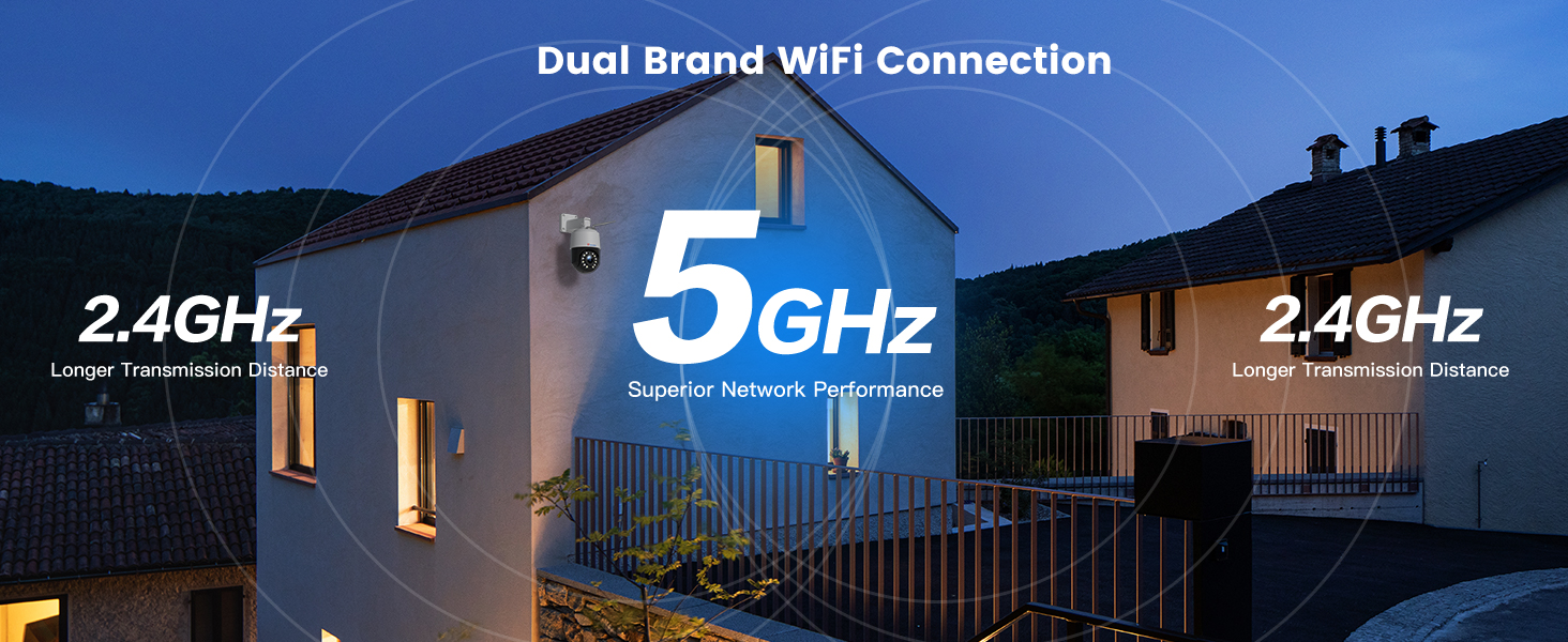 По сравнению с беспроводным WIFI, который может подключаться только к 2,4G, технология двухдиапазонной передачи Wi-Fi может поддерживать автоматическую идентификацию и подключение сигналов 2,4G и 5G, что позволяет хорошо адаптироваться к потребностям беспроводных сетей в различных средах. В то же время камера Ctronics 4K также имеет собственную точку доступа, которую можно подключить к сети мобильного телефона для мониторинга в режиме реального времени без Wi-Fi.