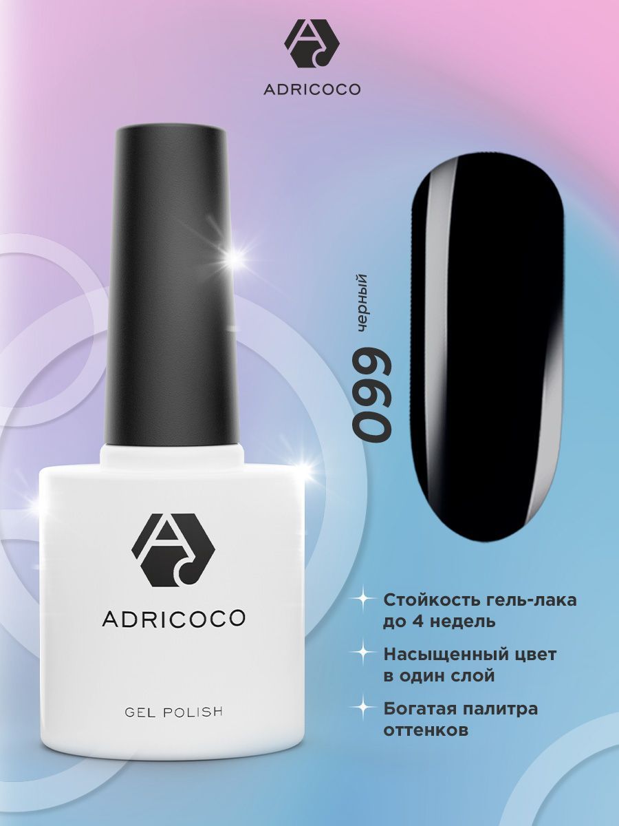 Цветной гель лак ADRICOCO №099 черный 8 мл. для ногтей