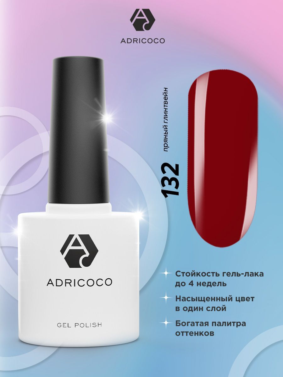 Цветной гель лак ADRICOCO №132 пряный глинтвейн 8 мл. для ногтей бордовый