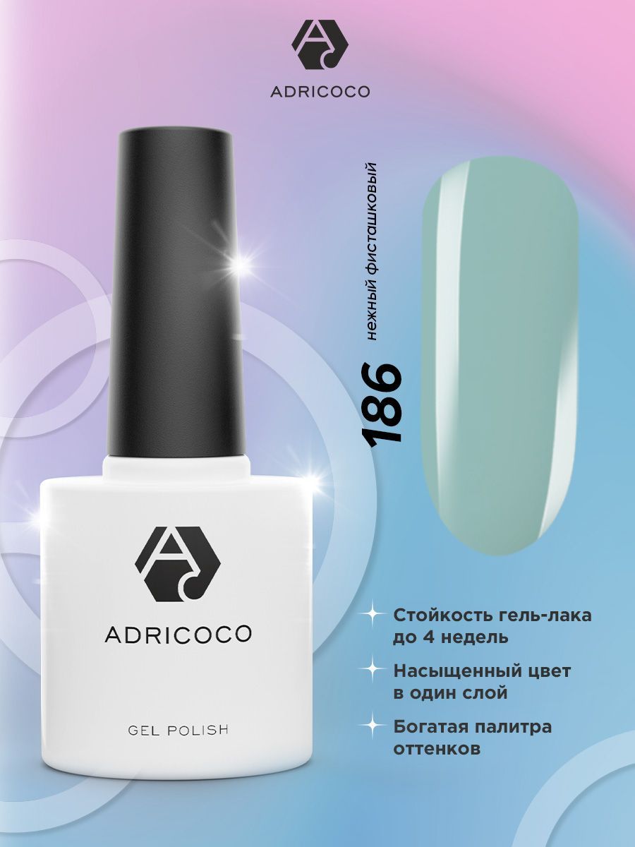 Цветной гель лак ADRICOCO №186 нежный фисташковый 8 мл. для ногтей зеленый