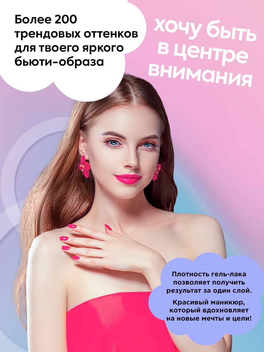 Нанесите тонким слоем гель-лак, полимеризуйте в LED-лампе 1 минуту, в UV-лампе – 2 минуты. При необходимости нанесите второй слой гель-лака, полимеризуйте так же.