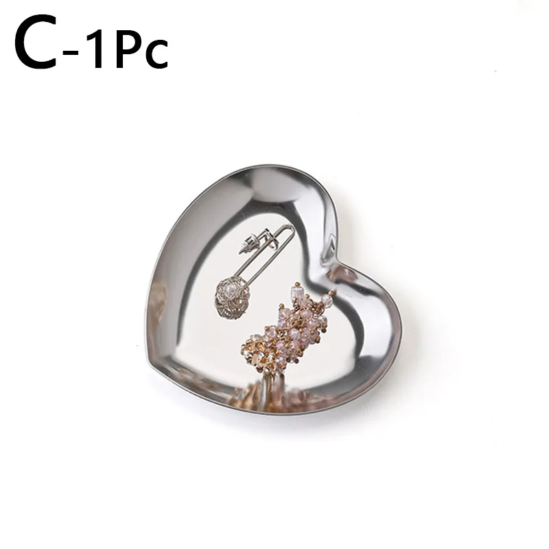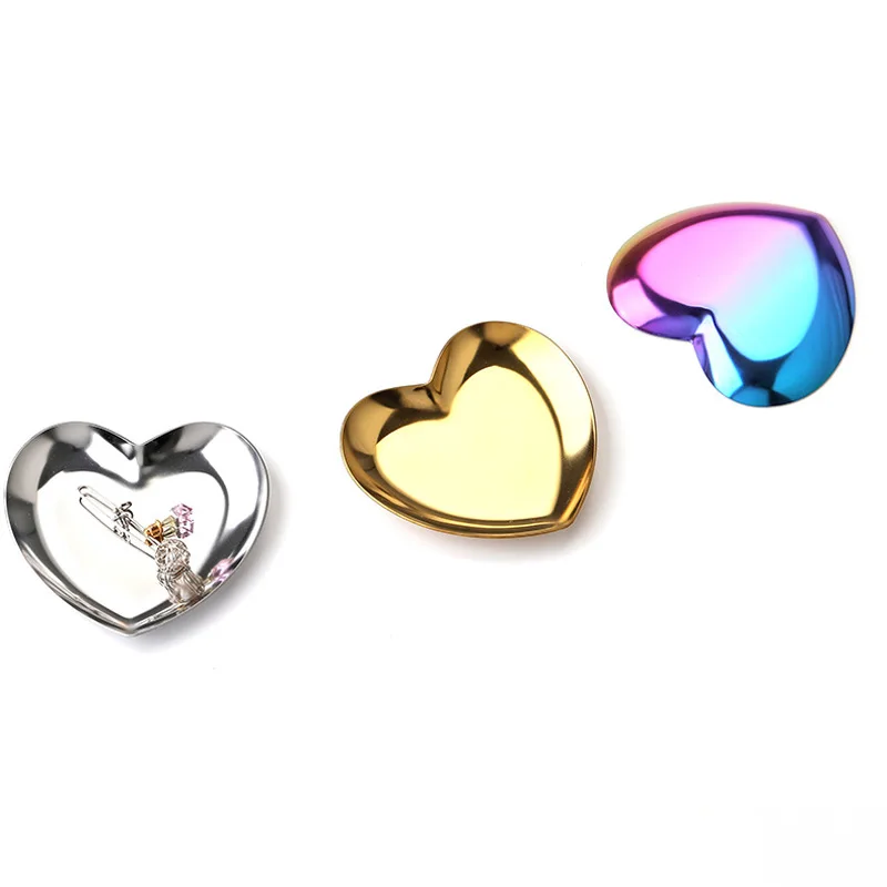 Цветной металлический зеркальный лоток для хранения из нержавеющей стали, фруктовая тарелка в форме сердца, маленькие предметы, поднос для демонстрации ювелирных изделий, десертная тарелка, украшение
