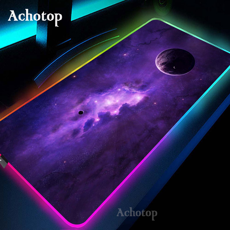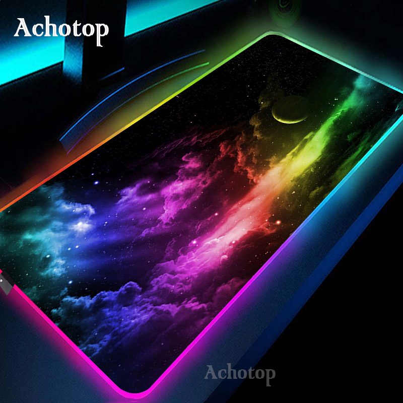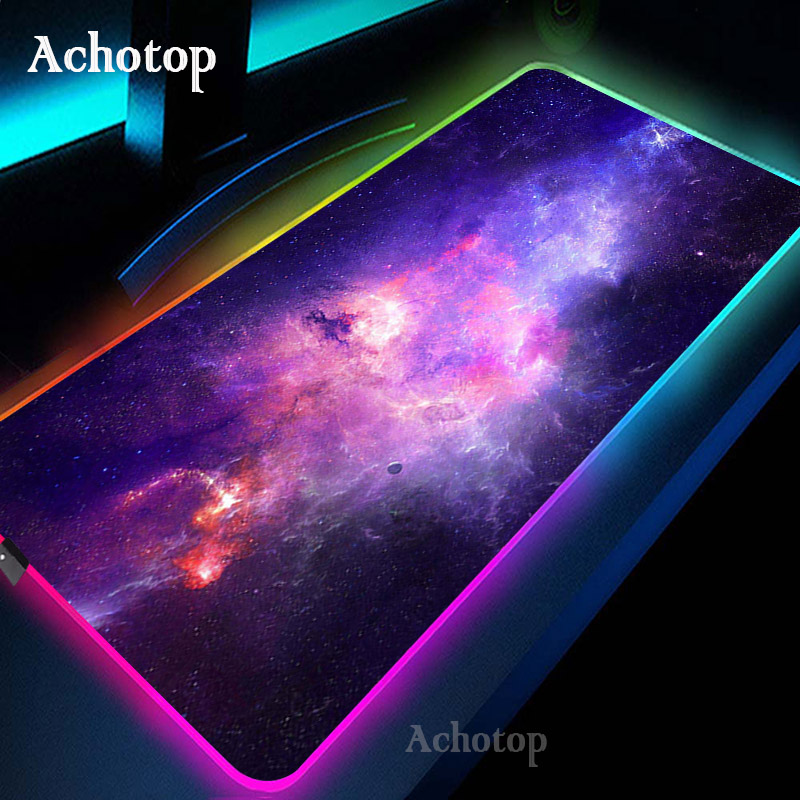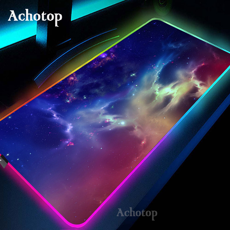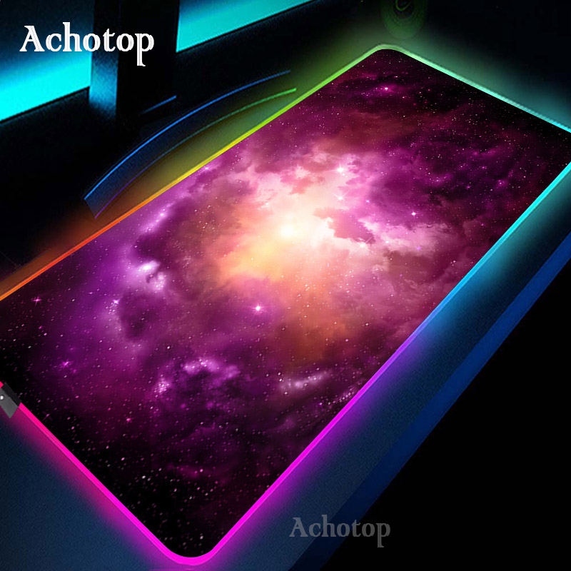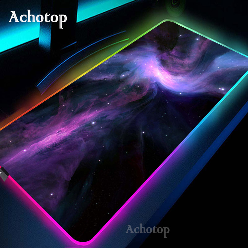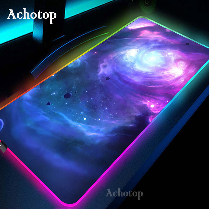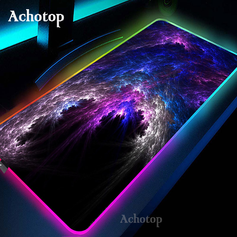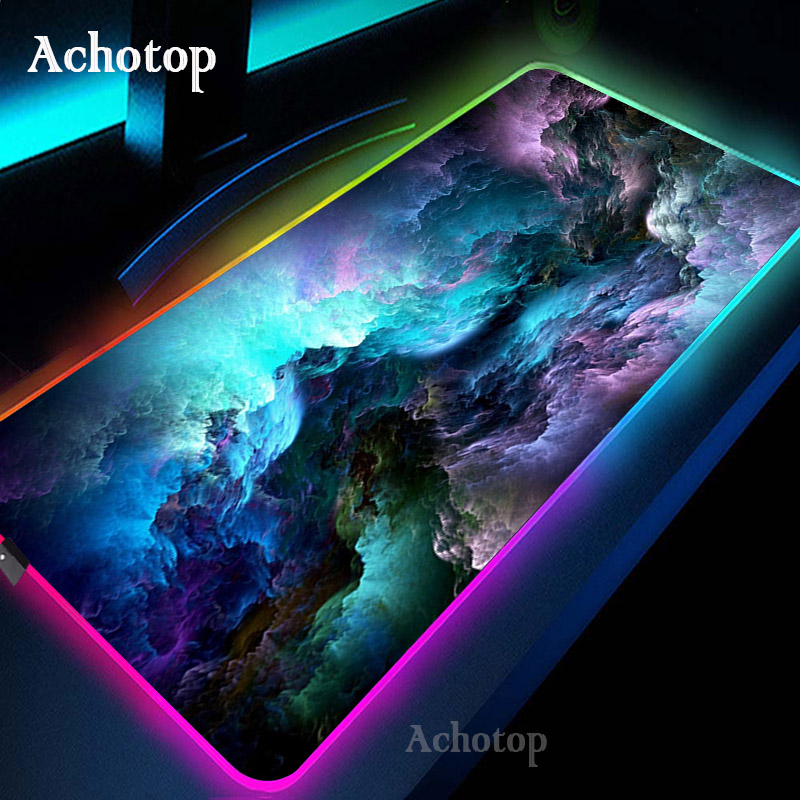 Цветной светящийся RGB игровой коврик для мыши, синий фиолетовый облако, космос, настольные компьютеры для компьютера, настольного компьютера, ноутбука для CSGO Dota2 LOL, геймерский коврик