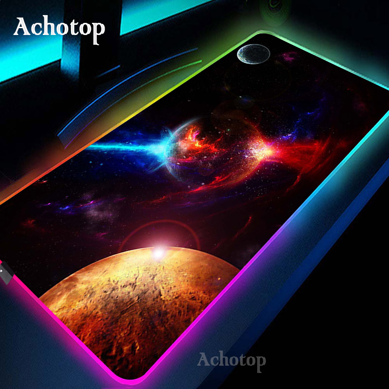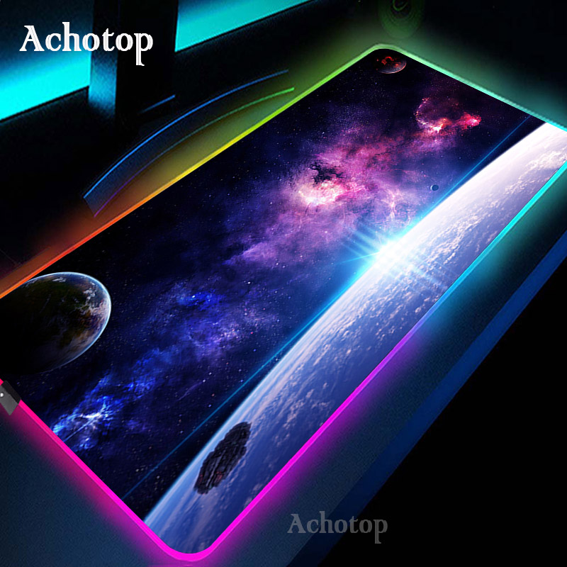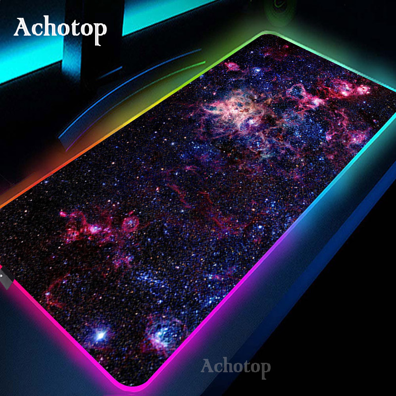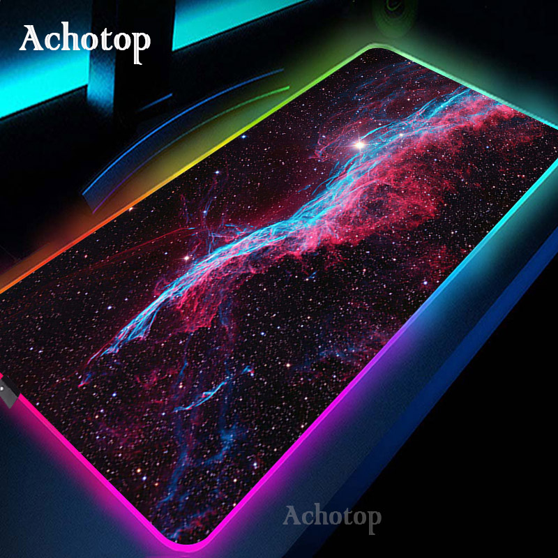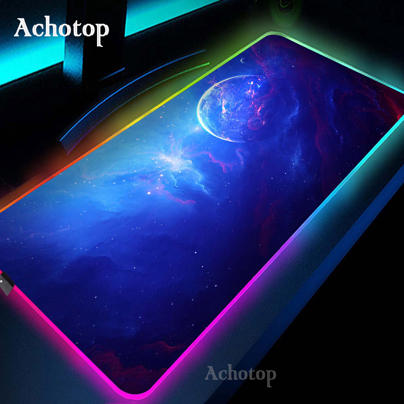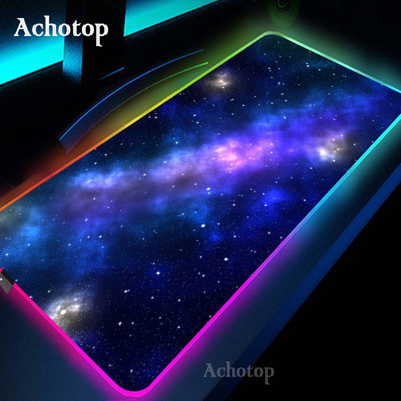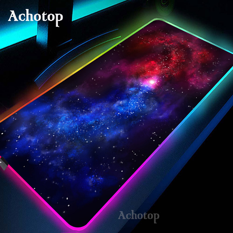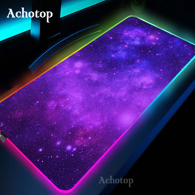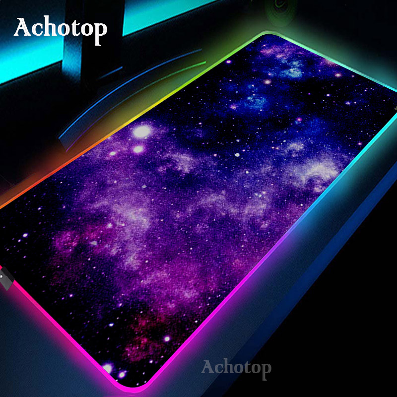 Цветной светящийся RGB игровой коврик для мыши, синий фиолетовый облако, космос, настольные компьютеры для компьютера, настольного компьютера, ноутбука для CSGO Dota2 LOL, геймерский коврик